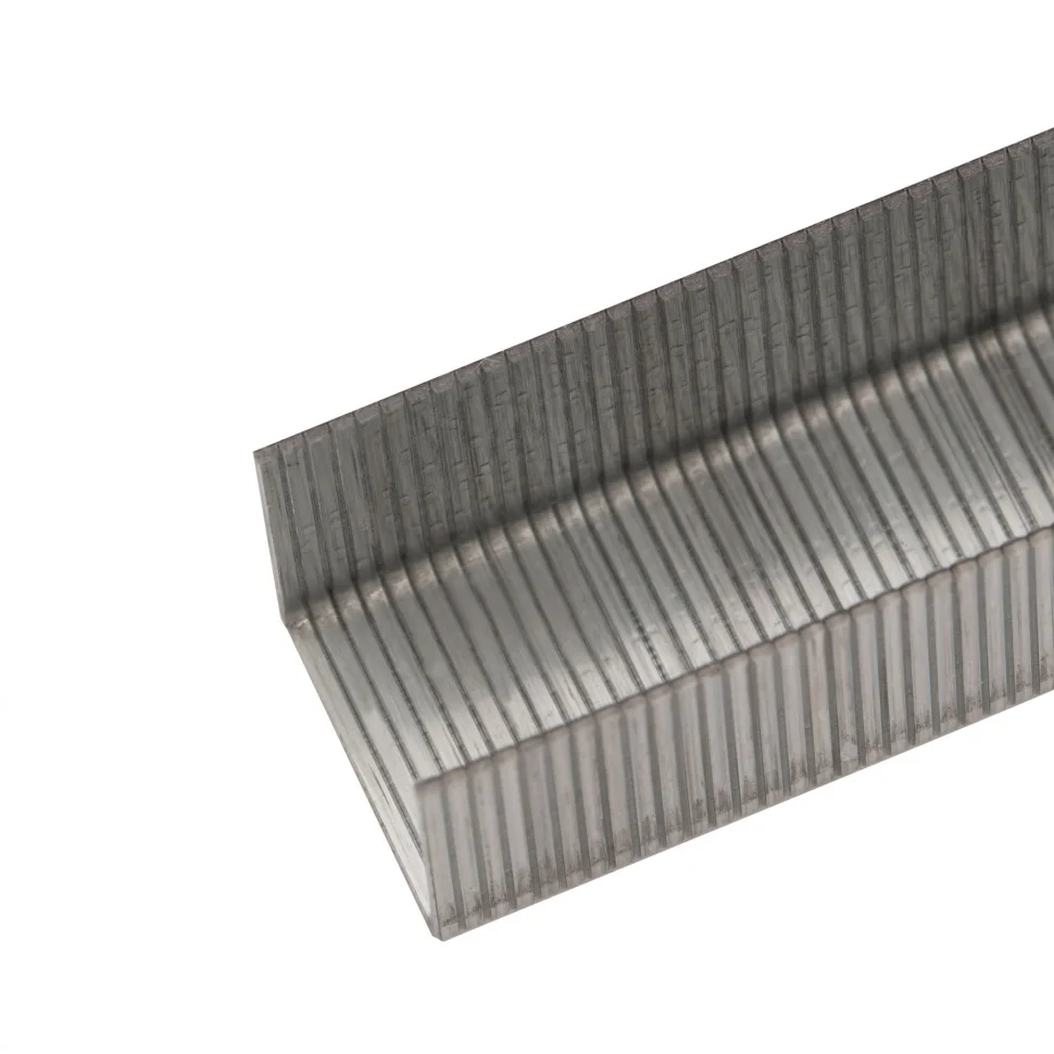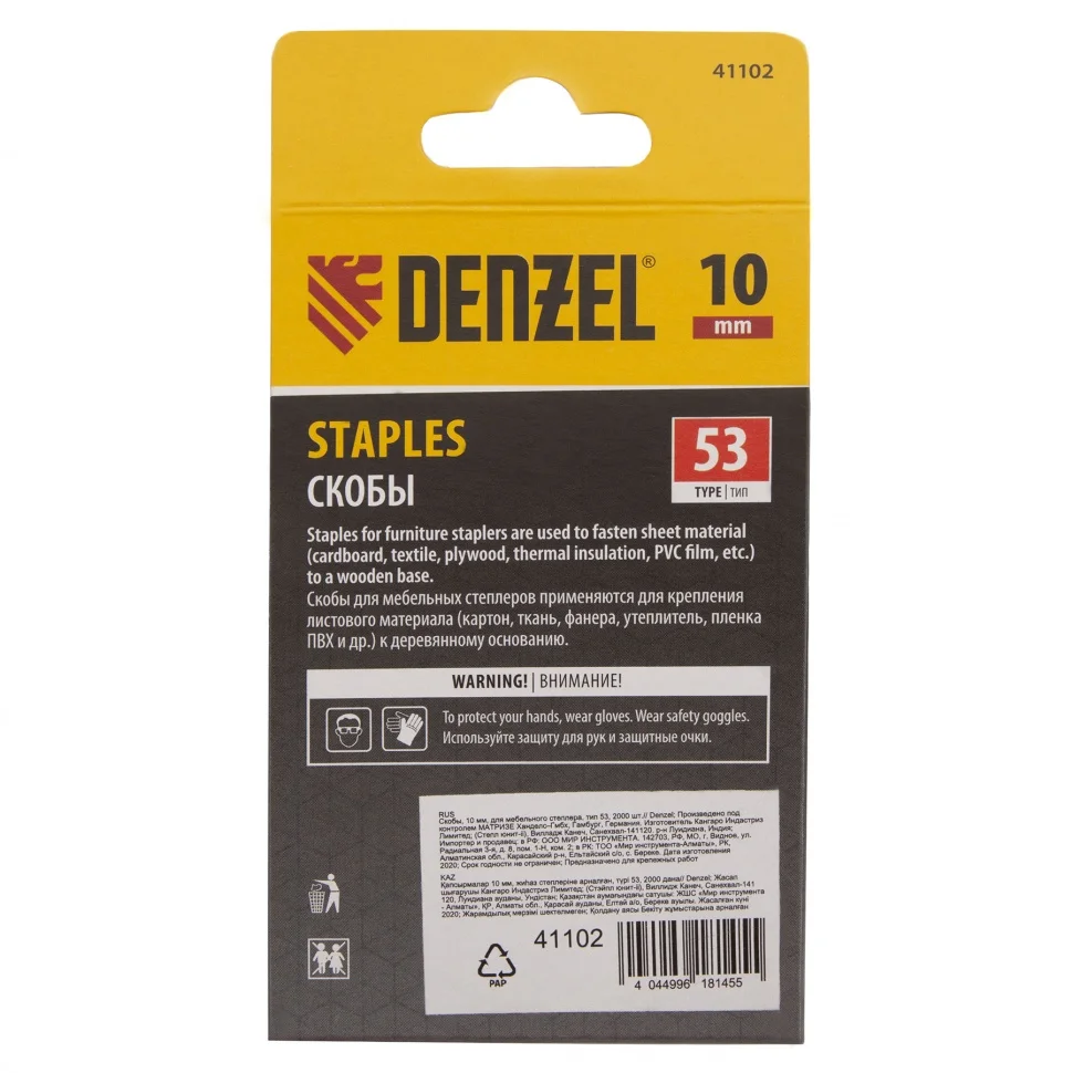 Скобы Denzel 41102 высотой 10 мм, тип 53, 2000 шт., используются в качестве расходных материалов для мебельного степлера. П-образные скобы универсальны по своему применению, поэтому подходят для фиксации картона, фанеры, ткани, пленки ПВХ, утеплителя и других материалов. Пригодятся при обшивке мебели, укладке утеплителя и других работах.ПреимуществаСтальные скобы обладают необходимой твердостью и подходят для вбивания как в мягкие, так и в твердые материалы.Оцинкованные изделия не подвержены коррозии.Прочность скоб на растяжение составляет 1150-1300 Н/мм2, что обеспечивает их пластичность и предотвращает изменение формы при вбивании.В коробке 2000 скоб для большого объема работ.