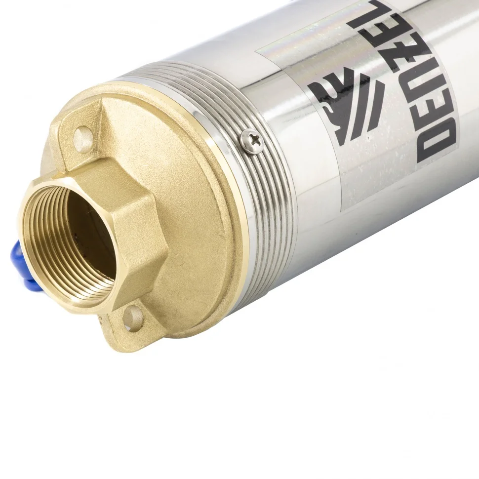Мощный скважинный насос Denzel DWC-3-60 на 800 Вт легко справляется с перекачиванием чистой воды с глубины до 80 м и поднимает ее на высоту 60 м. С его помощью можно организовать водоснабжение частного дома, полив или орошение грунта и другие бытовые цели.ПреимуществаНасос комплектуется выносным блоком с клавишей управления, которая упрощает эксплуатацию.Реле защиты на выносном блоке позволяет избежать поломки насоса при скачках напряжения и коротком замыкании.Термодатчик в обмотке двигателя предотвращает перегрев системы и оперативно отключает питание при превышении температурного режима. Это позволяет обеспечить продолжительный срок службы основного узла.Прочный корпус из нержавеющей стали не подвержен разрушению и коррозии, поэтому рассчитан на длительную эксплуатацию.Класс защиты насоса IPX8 и класс изоляции I гарантируют безопасное использование при полном погружении в воду и исключают поражение электрическим током.Маслозаливной двигатель не требует обслуживания, его отсек уже заполнен маслом для эффективного охлаждения, правильной работы подшипников и повышения их износоустойчивости.Резьба под трубу в выходном отверстии обеспечивает герметичное соединение с трубопроводом и стабильную производительность без утечек воды.Стальные проушины для фиксации троса обеспечивают безопасный монтаж насоса на большую глубину и легкое извлечение.Насос оснащен съемным кабелем электропитания длиной 20 м, поэтому можно безопасно погружать его на большую глубину.Штепсельная вилка, прикрепленная к блоку управления, имеет заземляющий контакт, который защищает пользователя от удара током и неправильного подключения устройства.