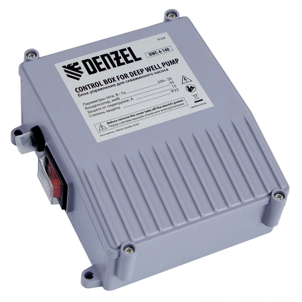 Скважинный насос Denzel DWC-4-140 забирает воду с глубины до 80 м и перекачивает ее со скоростью до 6000 л/час под давлением до 14 бар. Мощный двигатель на 2200 Вт обеспечит водоснабжение частного дома или дачного коттеджа, полив и орошение грунта, осушение колодца для прочистки и другие бытовые нужды. Насос отличается легким обслуживанием. Он уже готов к работе после покупки - не нужно производить заливку водой, просто погрузите его в скважину и включите питание.Преимущества: Отдельный блок с выключателем и реле защиты по току обеспечивает легкое управление и предохраняет двигатель от поломок в случае перегрузки. Защита от перегрева гарантирует долгую работу двигателя, т.к. он оперативно отключается при превышении максимально допустимой температуры и не разрушается. Степень защиты IPX8 позволяет безопасно погружать насос на большую глубину без риска попадания воды на электронную “начинку” и двигатель. Корпус насоса изготовлен из высококачественной нержавеющей стали, поэтому он устойчив к износу и рассчитан на долгие годы службы. Асинхронный электродвигатель заполняется маслом на заводе и не требует никакого обслуживания. Такое решение позволяет продлить срок действия подшипников и добиться эффективного охлаждения. Насос не выйдет из строя при попадании твердых частиц размером до 0.5 мм, а в случае скапливания крупного песка в заборной части его легко очистить. Стальные проушины на корпусе позволяют легко установить и извлечь насос с помощью привязанного к ним троса. Это позволяет избежать переворачивания и некорректной работы оборудования. Дюймовая резьба на соединительном разъеме обеспечивает быстрое и герметичное подключение напорного шланга и позволяет добиться стабильной производительности. Съемный сетевой кабель длиной 30 м и штепсельная вилка с заземляющим контактом обеспечивают безопасное подключение и защиту от удара током. При необходимости удлинения кабеля его можно нарастить до нужной величины.