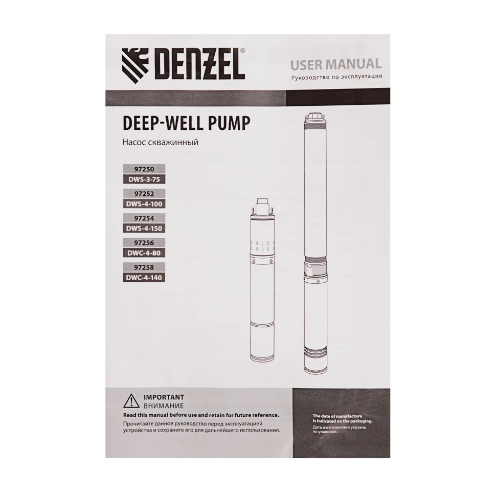 Скважинный насос DWS-3-75, винтовой, диаметр 3", 500 Вт, 1600 л/ч, напор 75 м Denzel 97250