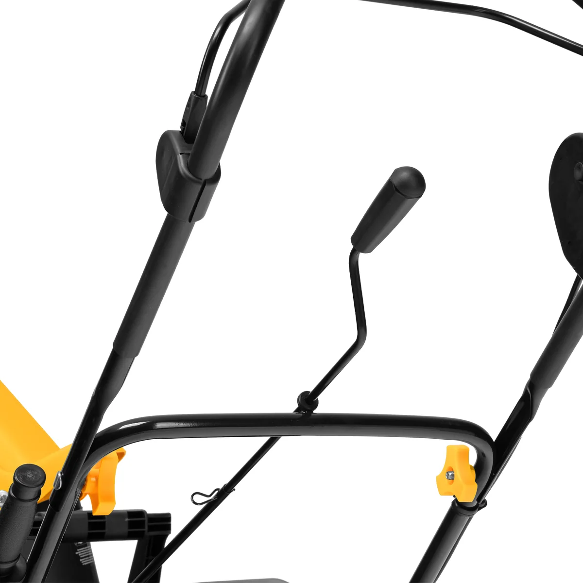 - Дистанционное управление желобом — благодаря удобной рукоятке не нужно наклоняться, чтобы отрегулировать направление выброса снега.