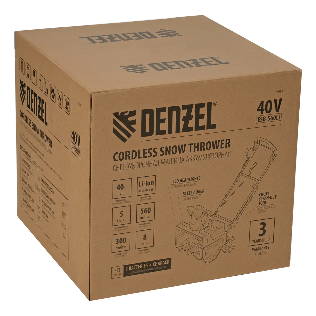Снегоуборочная машина аккумуляторная, ESB-560Li, 560 мм, 40В, 2 АКБ 5 Ач, ЗУ, метал. шнек Denzel 97639