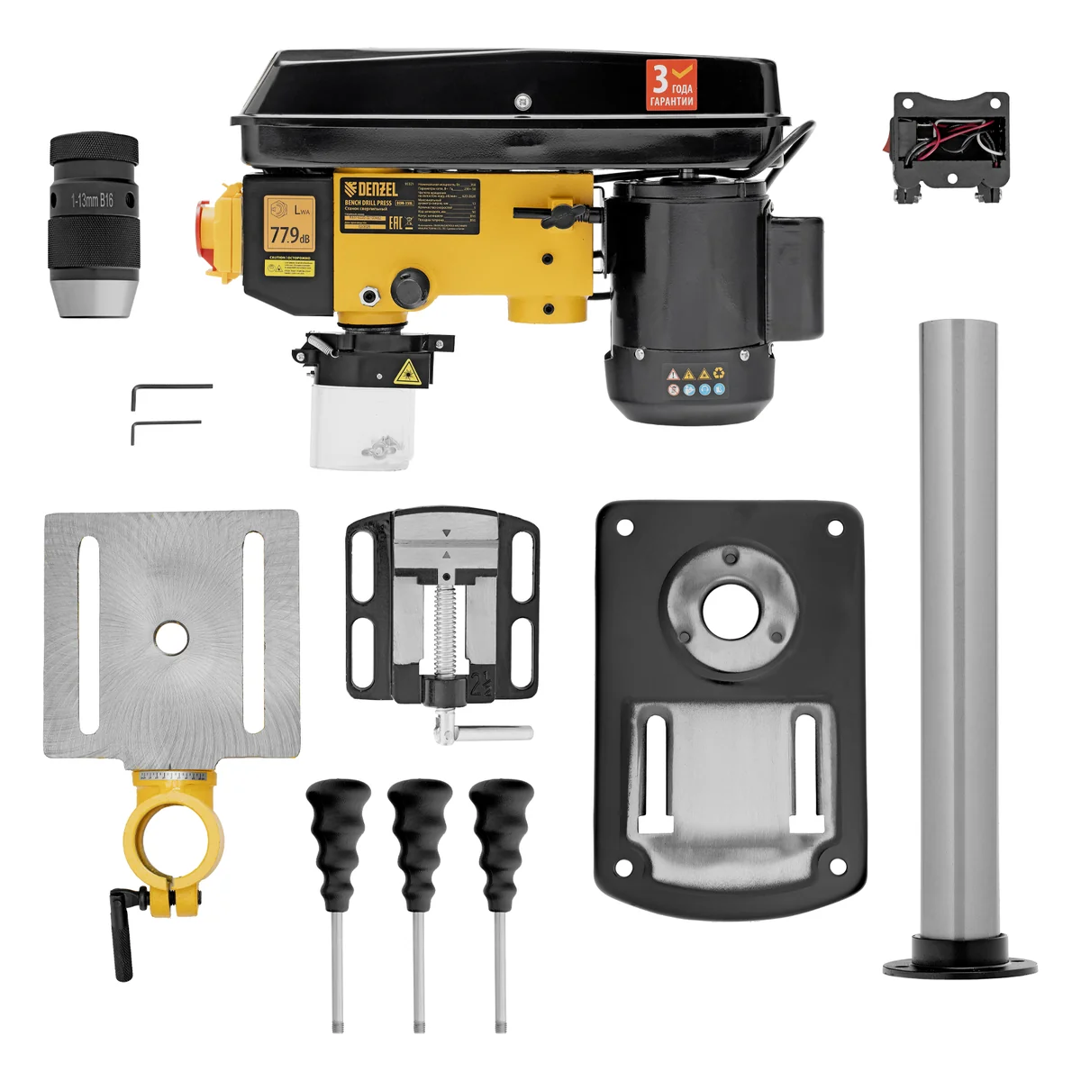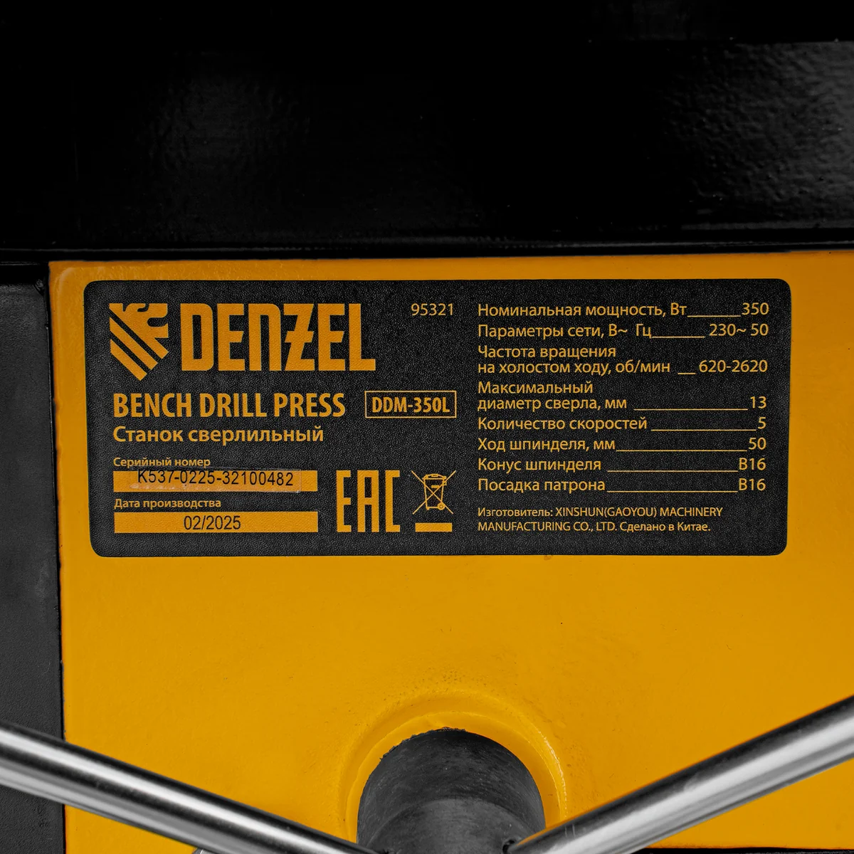 Станок сверлильный DDM-350L, 350 Вт, 13 мм, 5 ск., лазер, настольный Denzel 95321