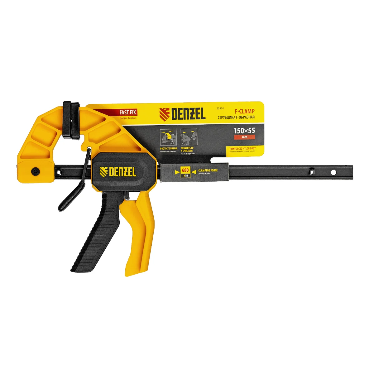 Струбцина F-образная, быстрозажимная, 150 х 55 мм, усиленный нейлоновый корпус Denzel 20501