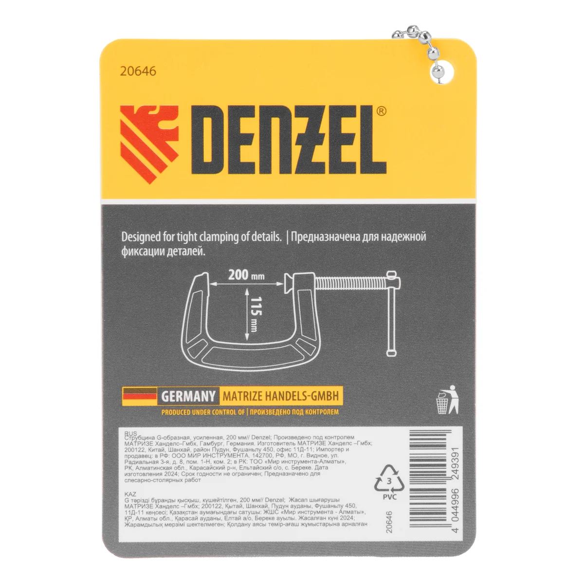 Струбцина G-образная, усиленная, 200 мм Denzel 20646