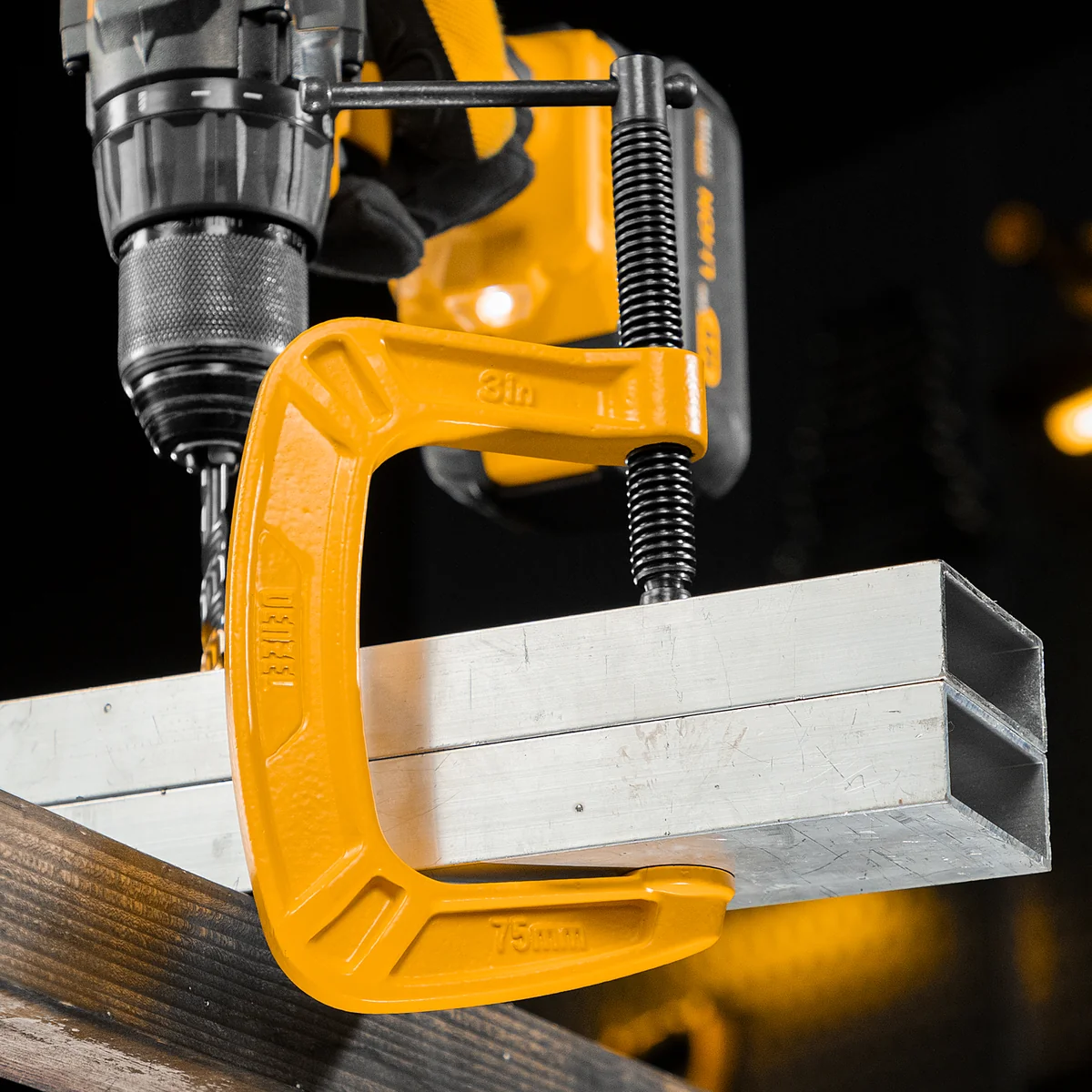 G-образная струбцина Denzel 20642 с максимальной шириной зажима 75 мм используется для фиксации заготовок или закрепления их на верстаке, станке или между собой. Позволяет склеивать детали, а также сверлить их, шлифовать, опиливать и проводить другие работы. Может использоваться во время выполнения сварочных работ. Винт с трапециевидной резьбой обеспечивает надежную фиксацию предметов. Струбцина применяется в слесарном и столярном деле, будет полезна также домашнем хозяйстве.