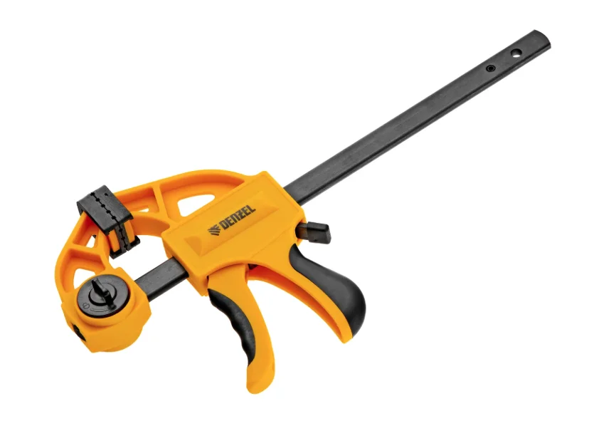 Струбцина F-образная, быстрозаж., 6"x 2 3/4", 150х70мм, пласт.корпус,фиксатор,двухк. рук-ка Denzel 7720563