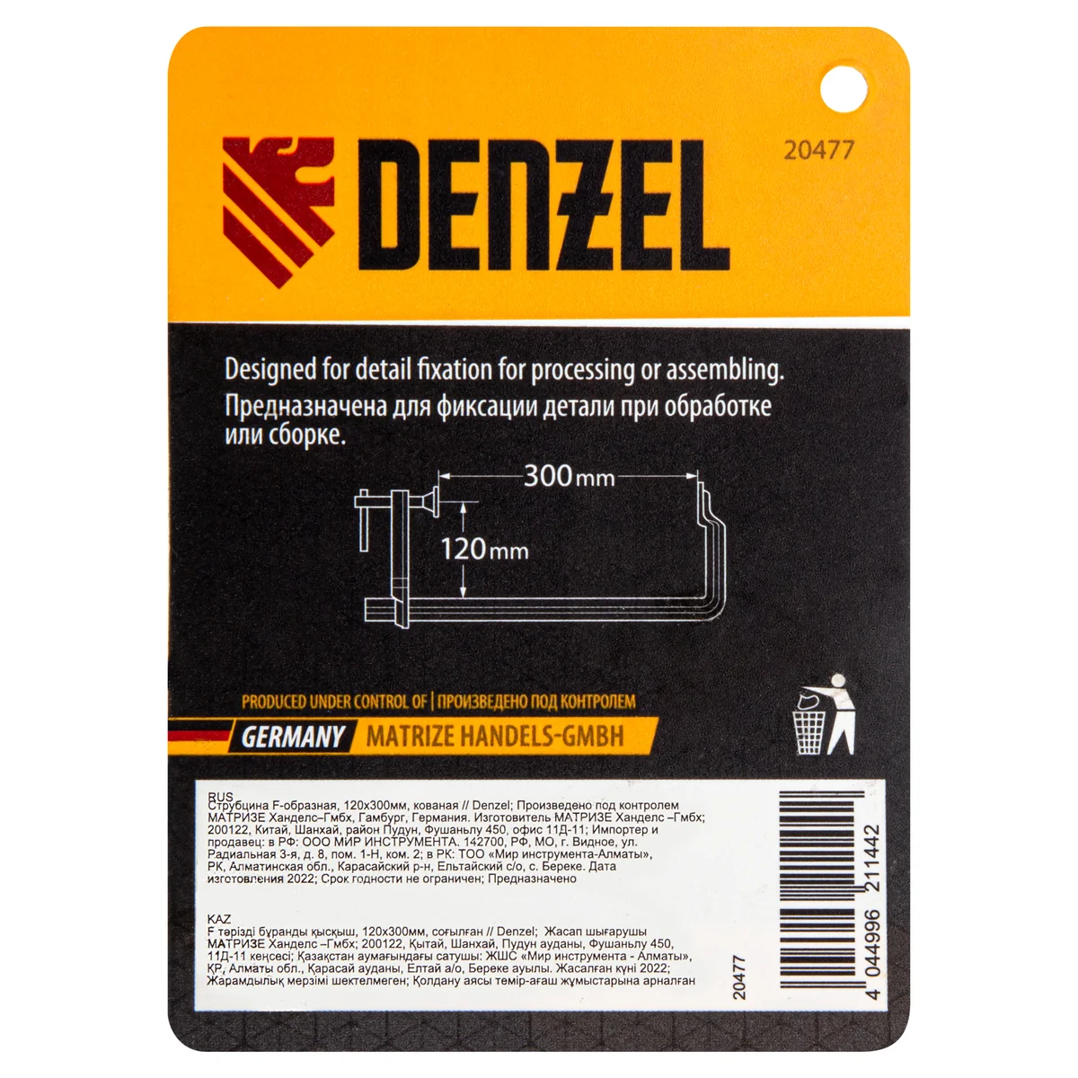 Струбцина F-образная, 120x300мм, кованая Denzel 20477