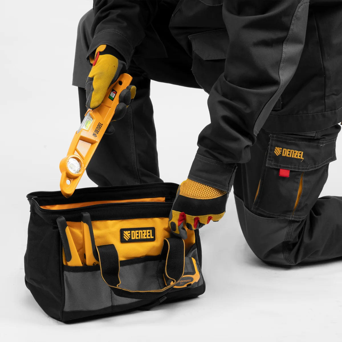 Сумка Denzel 90292 с 14 карманами, габаритами 305 х 190 х 195 мм, предназначена для хранения и транспортировки инструментов. Пригодится строителям, сантехникам, монтажникам и автовладельцам.