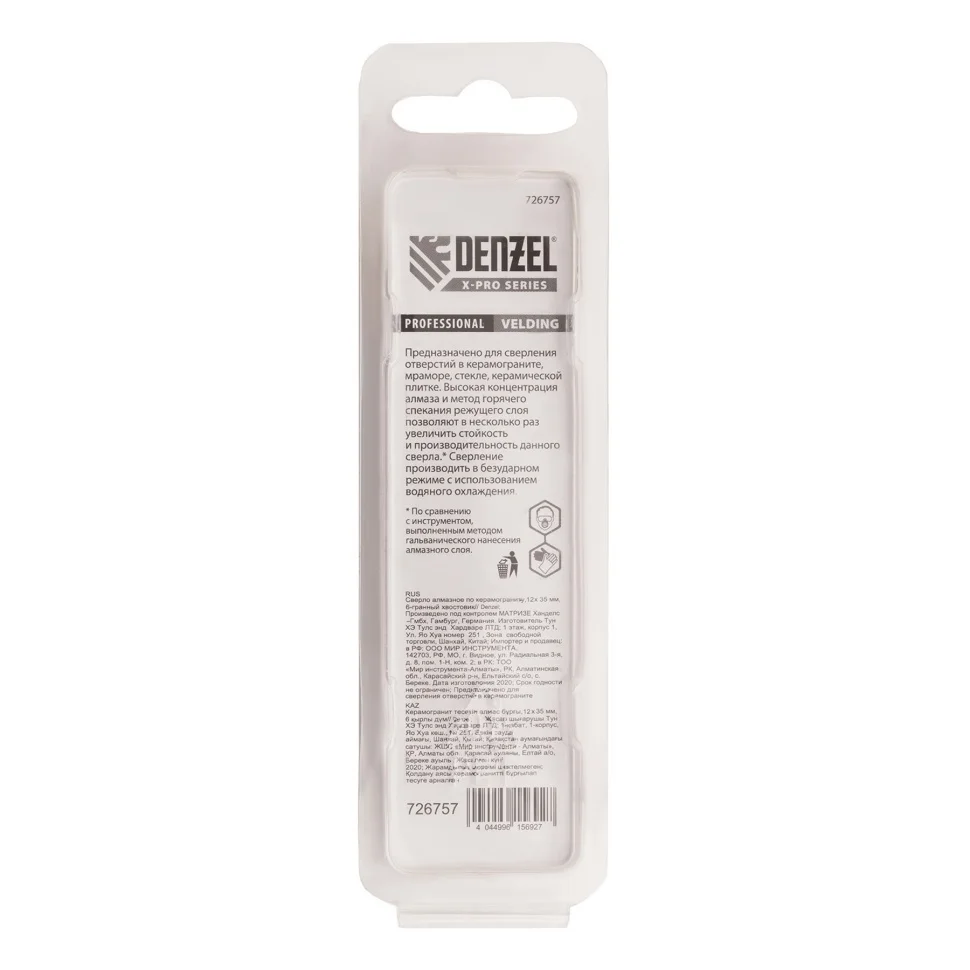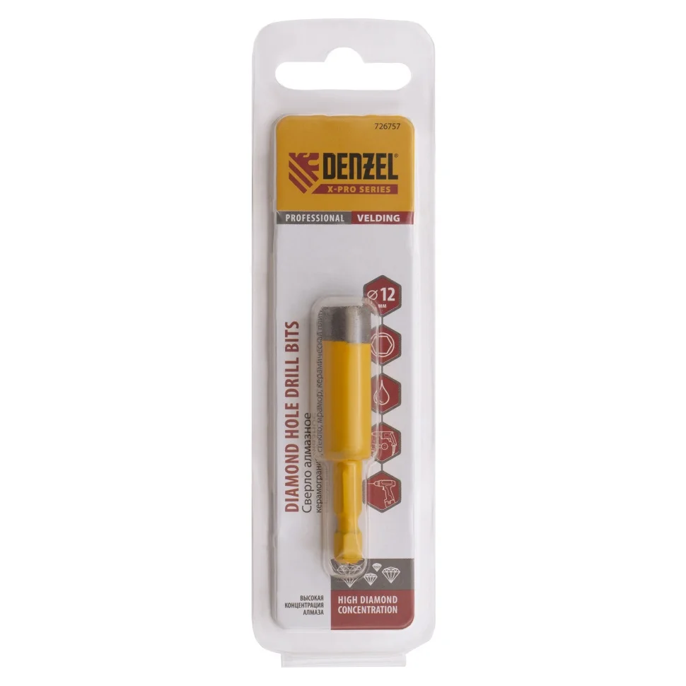 Сверло алмазное по керамограниту, 12 х 35 мм, шестигранный хвостовик Denzel 726757