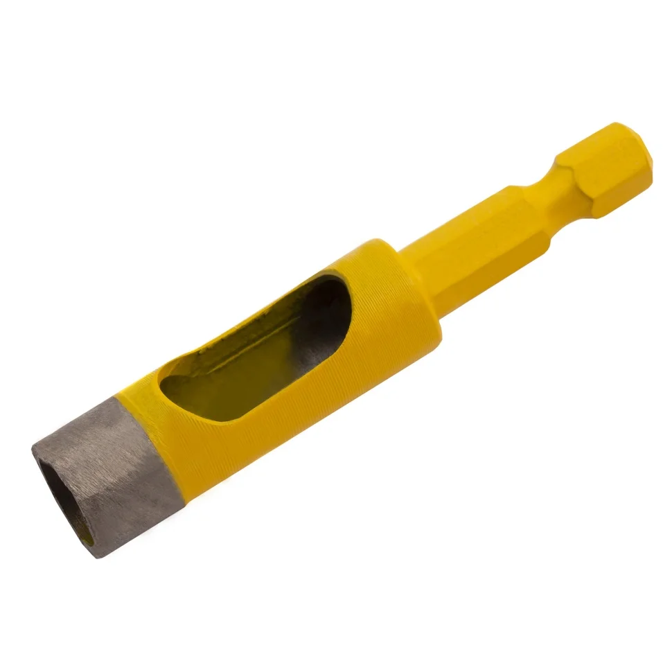 Алмазное сверло Denzel 726757, 12 х 35 мм, с 6-гранным хвостовиком, — режущий инструмент для получения точных отверстий диаметром 12 мм. Подходит для работ по стеклу, керамике, а также керамограниту и мрамору. Используется в качестве оснастки для дрелей и шуруповертов. Сверление с применением водяного охлаждения позволит избежать перегрева сверла и продлить срок его службы. Использование кондуктора 72833 препятствует смещению коронки и облегчает засверливание. Оснастка предназначена для профессионального использования.ПреимуществаСверло изготовлено из среднеуглеродистой стали марки 45, поэтому характеризуется прочностью и устойчивостью к повреждениям.Плотная концентрация алмазов в режущем слое увеличивает ресурс и производительность оснастки.Рабочий слой изготовлен методом горячего прессования, поэтому алмазы надежно удерживаются в связке — это обеспечивает устойчивость сверла к повышенным нагрузкам и позволяет сверлить керамогранит и мрамор.Шестигранный хвостовик надежно фиксируется в патроне электроинструмента, исключая проворачивание коронки.Лакокрасочное покрытие защищает оснастку от коррозии при мокром сверлении, продлевая срок ее службы.