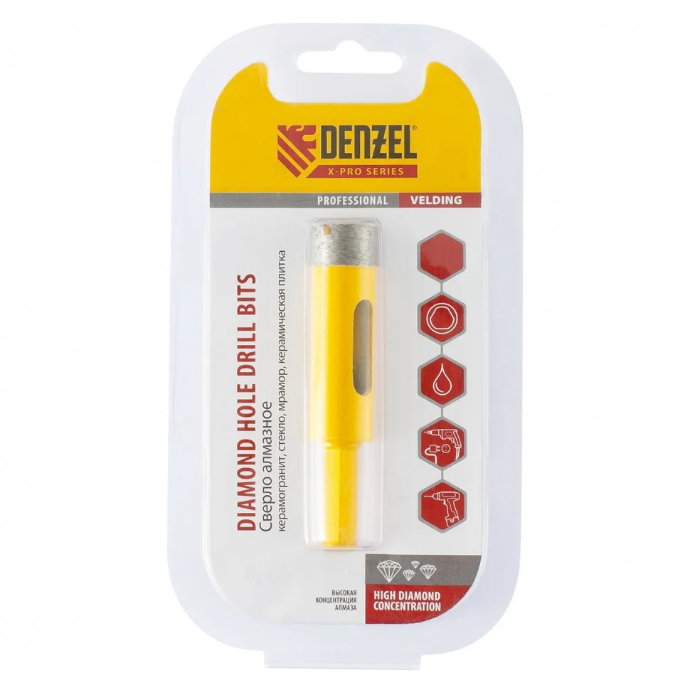 Сверло алмазное по керамограниту, 22 мм, мокрая резка, трехгранный хвостовик Denzel 72680