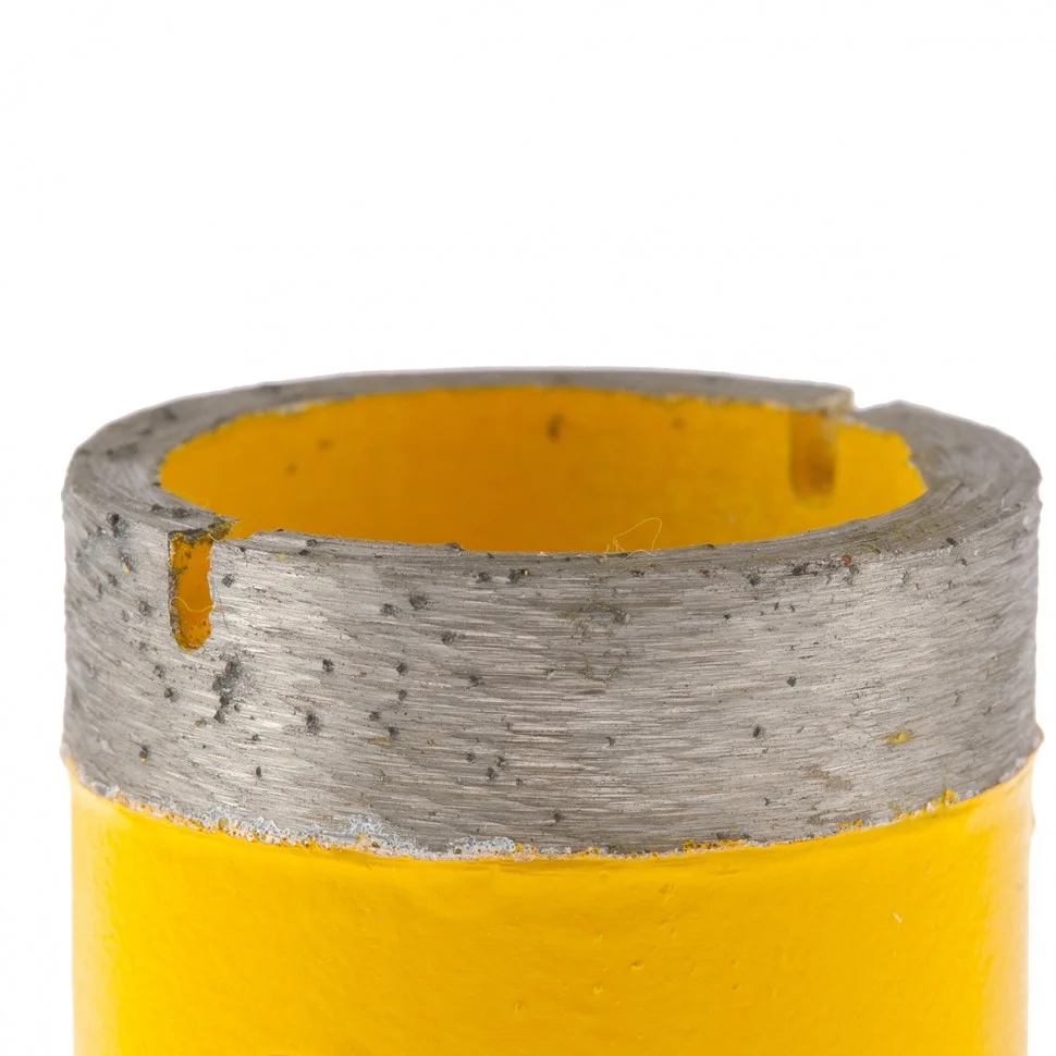 Алмазное сверло Denzel 72684, 32 мм, М14, предназначено для мокрого сверления по керамограниту, мрамору, стеклу и керамической плитке. Позволяет получать ровные отверстия без сколов, используется при проведении ремонтных и отделочных работ. Сверло (коронку) устанавливают на вал углошлифовальной машины, благодаря чему скорость сверления увеличивается в несколько раз по сравнению с дрелью или шуруповертом. Применение водяного охлаждения повышает срок службы оснастки. Чтобы точно позиционировать сверло при сверлении дрелью, рекомендуется использовать кондуктор Matrix 72830.ПреимуществаСверло выполнено из среднеуглеродистой стали марки 45, поэтому устойчиво к механическим нагрузкам и выдерживает длительное применение.Режущий слой изготовлен методом горячего спекания, что обеспечивает надежную фиксацию алмазов связкой и высокий ресурс оснастки.Благодаря увеличенной концентрации алмазов в рабочем слое коронка долго сохраняет режущую способность.На поверхность сверла нанесено лакокрасочное покрытие, обеспечивающее защиту от коррозии при мокром сверлении.При помощи переходника Matrix 76290 сверло можно установить на дрель или шуруповерт.