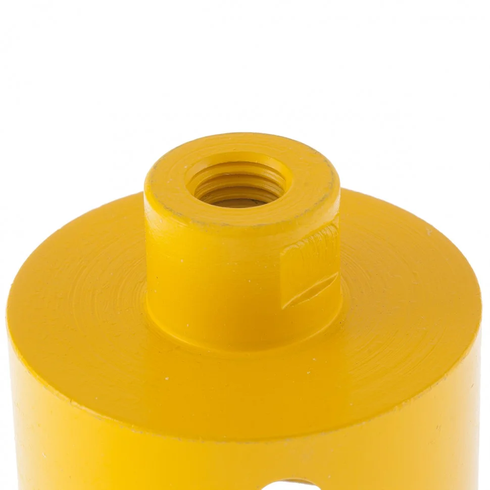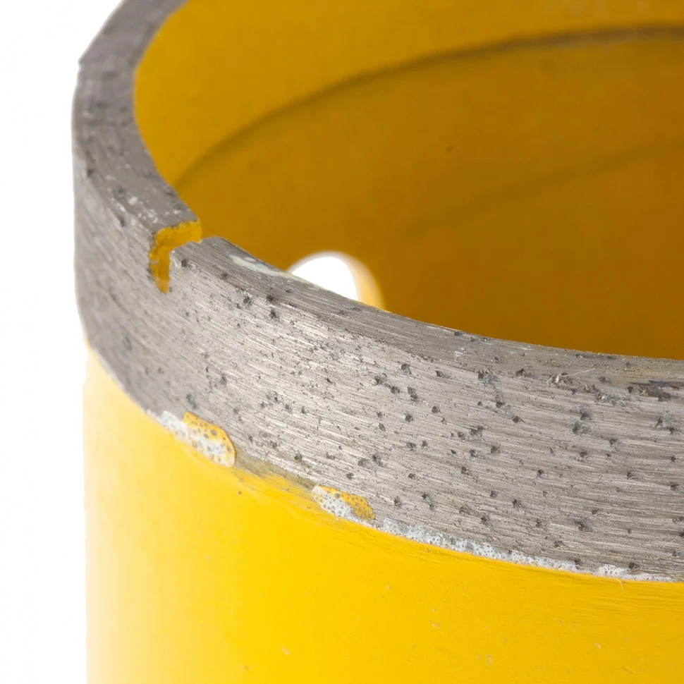 Алмазное сверло Denzel 72693, 68 мм, М14, предназначено для мокрого сверления по керамограниту, мрамору, стеклу и керамической плитке. Позволяет получать ровные отверстия без сколов, используется при проведении ремонтных и отделочных работ. Сверло (коронку) устанавливают на вал углошлифовальной машины, благодаря чему скорость сверления увеличивается в несколько раз по сравнению с дрелью или шуруповертом. Применение водяного охлаждения повышает срок службы оснастки. Чтобы точно позиционировать сверло при сверлении дрелью, рекомендуется использовать кондуктор Matrix 72830.ПреимуществаСверло выполнено из среднеуглеродистой стали марки 45, поэтому устойчиво к механическим нагрузкам и выдерживает длительное применение.Режущий слой изготовлен методом горячего спекания, что обеспечивает надежную фиксацию алмазов связкой и высокий ресурс оснастки.Благодаря увеличенной концентрации алмазов в рабочем слое коронка долго сохраняет режущую способность.На поверхность сверла нанесено лакокрасочное покрытие, обеспечивающее защиту от коррозии при мокром сверлении.При помощи переходника Matrix 76290 сверло можно установить на дрель или шуруповерт.
