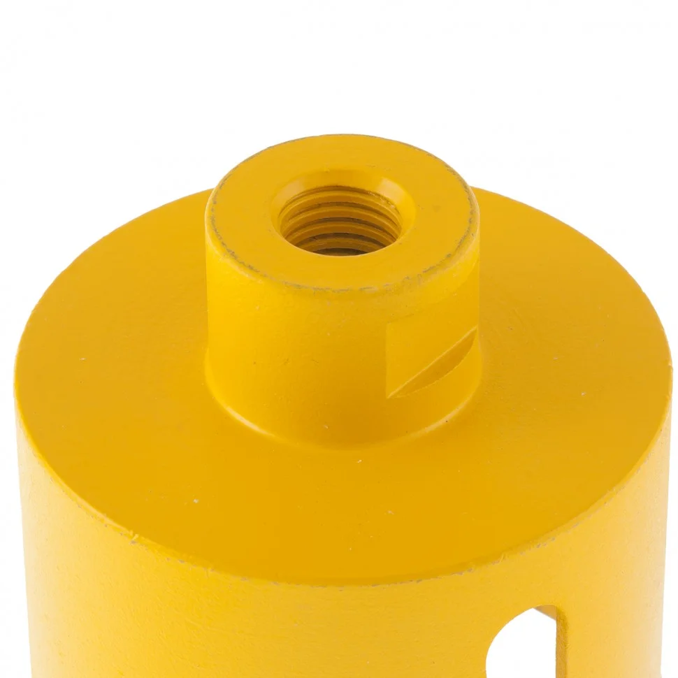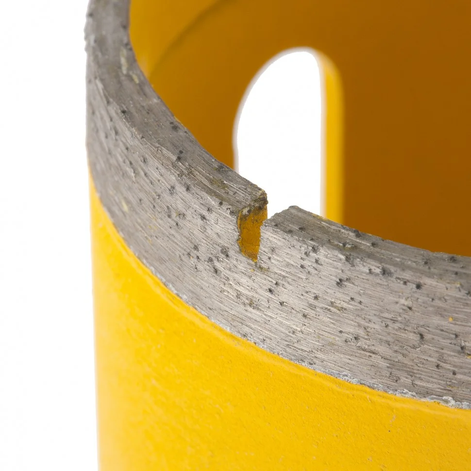 Алмазное сверло Denzel 72694, 70 мм, М14, предназначено для мокрого сверления по керамограниту, мрамору, стеклу и керамической плитке. Позволяет получать ровные отверстия без сколов, используется при проведении ремонтных и отделочных работ. Сверло (коронку) устанавливают на вал углошлифовальной машины, благодаря чему скорость сверления увеличивается в несколько раз по сравнению с дрелью или шуруповертом. Применение водяного охлаждения повышает срок службы оснастки. Чтобы точно позиционировать сверло при сверлении дрелью, рекомендуется использовать кондуктор Matrix 72830.ПреимуществаСверло выполнено из среднеуглеродистой стали марки 45, поэтому устойчиво к механическим нагрузкам и выдерживает длительное применение.Режущий слой изготовлен методом горячего спекания, что обеспечивает надежную фиксацию алмазов связкой и высокий ресурс оснастки.Благодаря увеличенной концентрации алмазов в рабочем слое коронка долго сохраняет режущую способность.На поверхность сверла нанесено лакокрасочное покрытие, обеспечивающее защиту от коррозии при мокром сверлении.При помощи переходника Matrix 76290 сверло можно установить на дрель или шуруповерт.
