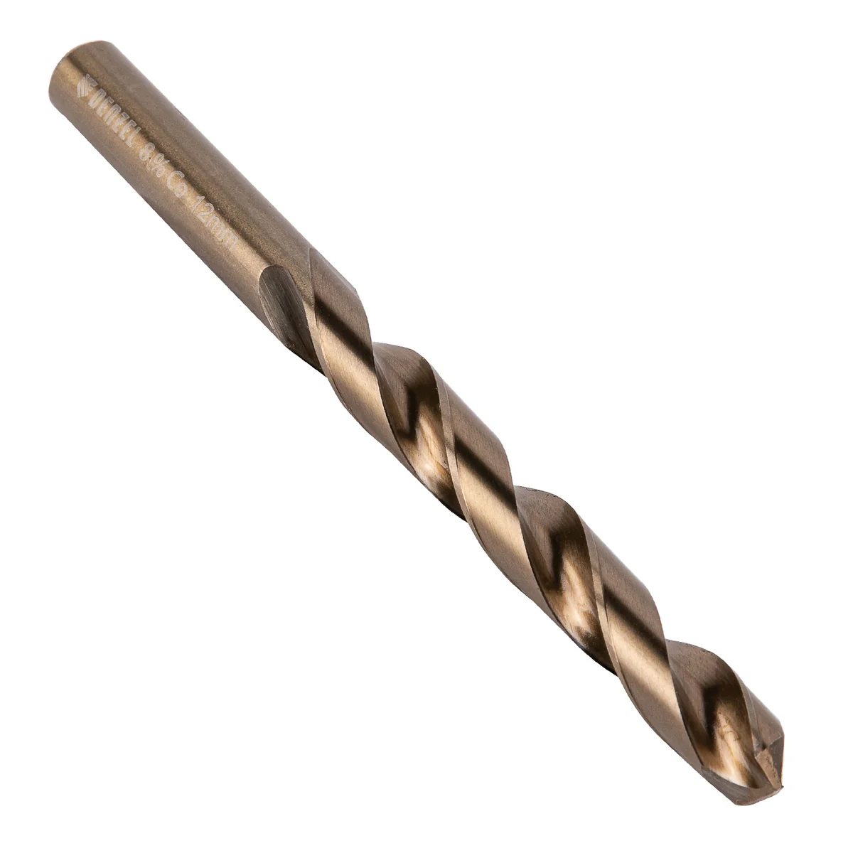 Кобальтовое сверло по металлу Denzel 71463 диаметром 12 мм, из стали HSS Co-8%, позволяет получать отверстия высокой точности в нержавеющей стали, цветных металлах, легированных и нелегированных сталях с пределом прочности до 1100 Н/мм2, а также в жестком пластике. Угол заточки 135° обеспечивает повышенную точность и чистоту сверления.ПреимуществаПовышенная стойкость к износу и перегреву — сверло изготовлено из наиболее качественной быстрорежущей стали М42 с 8%-ным содержанием кобальта.Точная и быстрая работа — шлифованный профиль обеспечивает эффективный отвод металлической стружки и позволяет добиться гладкого отверстия.Легкое засверливание — подточка поперечной кромки Split point повышает устойчивость сверла к нагрузкам и позволяет приступать к работе без предварительной разметки поверхности (накернивания).Универсальность — цилиндрический хвостовик совместим со всеми типами патронов.