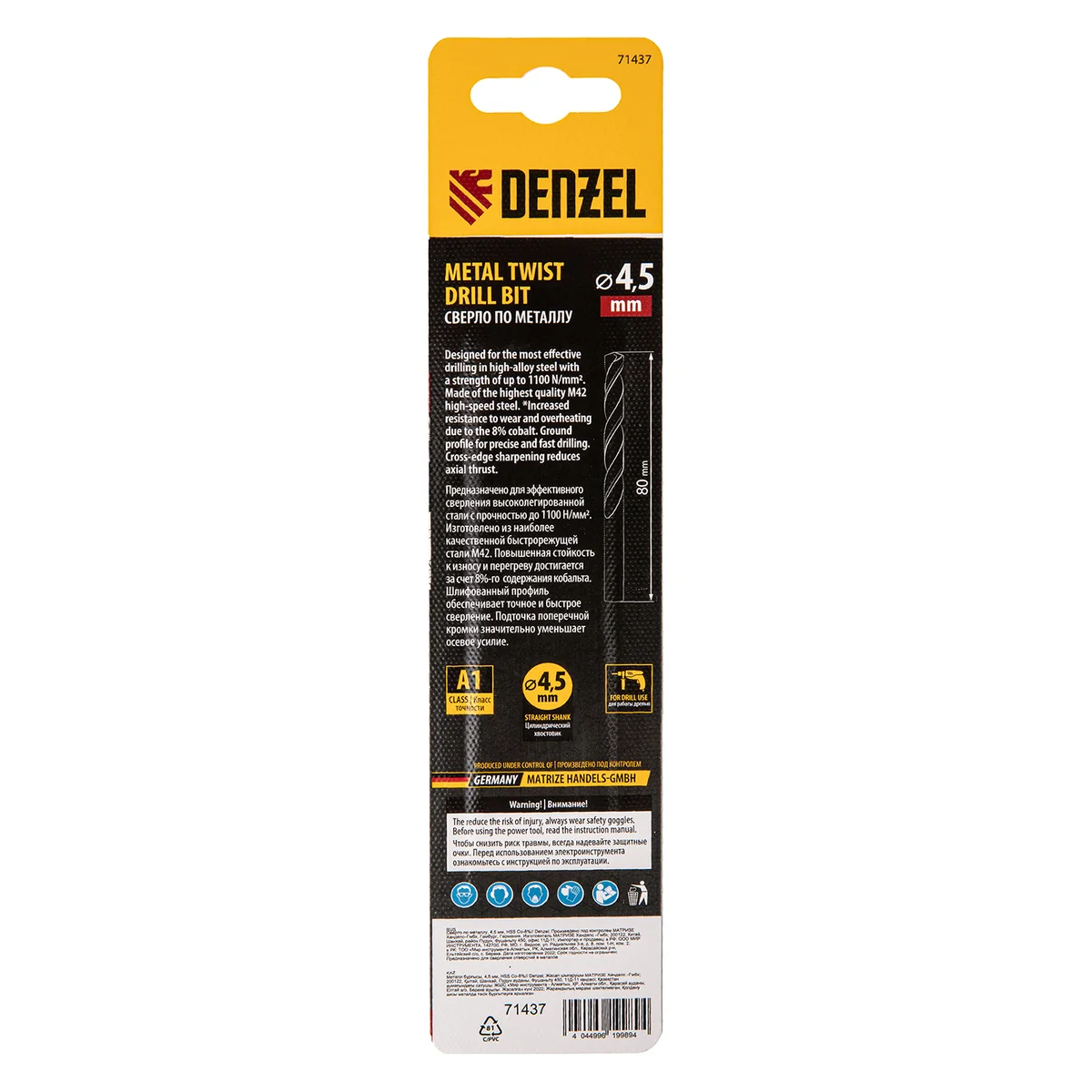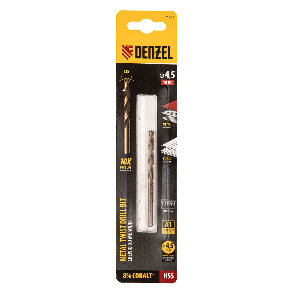 Сверло по металлу, 4,5 мм, HSS Co-8%// Denzel 71437