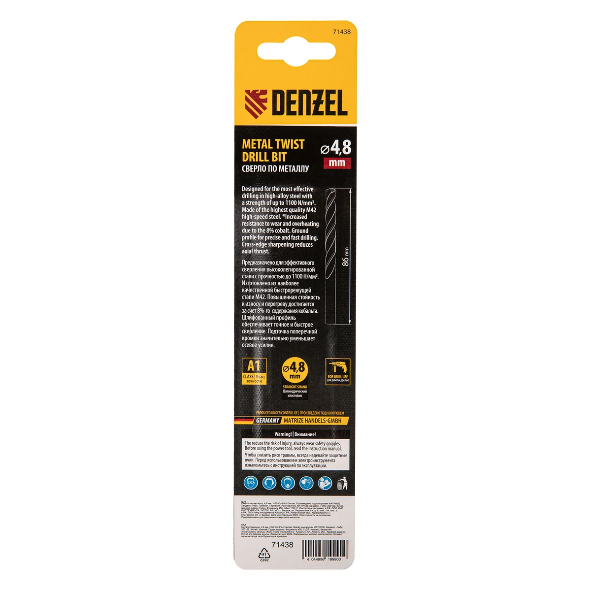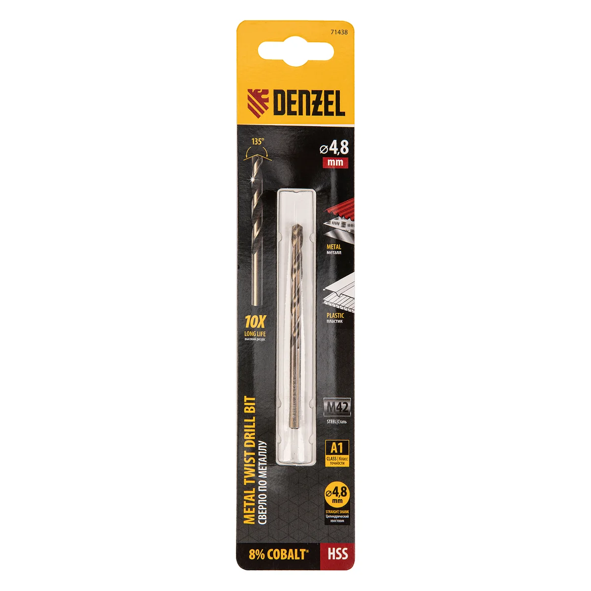 Сверло по металлу, 4,8 мм, HSS Co-8%// Denzel 71438
