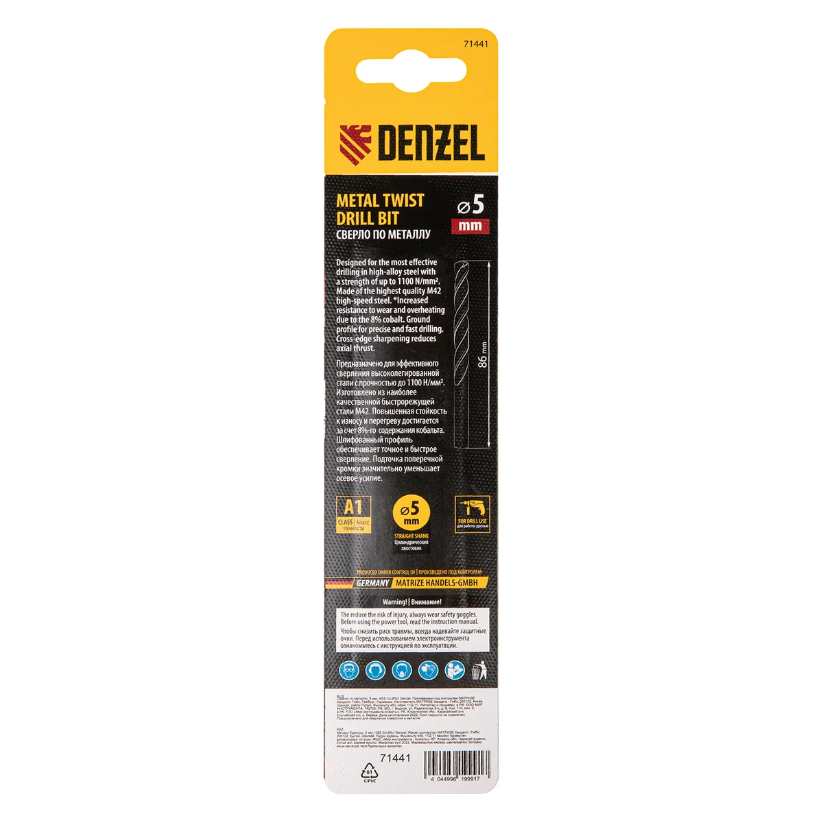 Сверло по металлу, 5 мм, HSS Co-8%// Denzel 71441