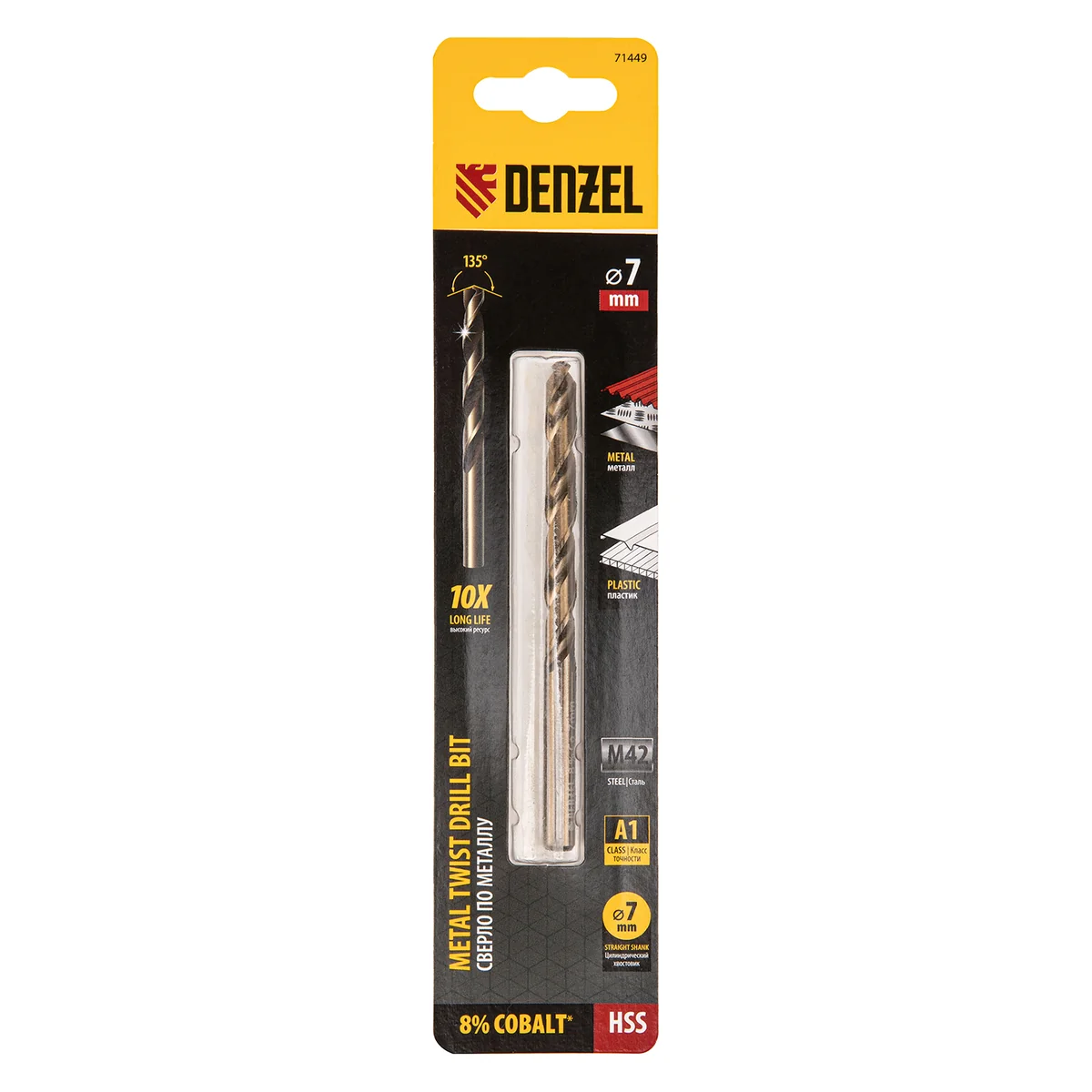 Сверло по металлу, 7 мм, HSS Co-8%// Denzel 71449