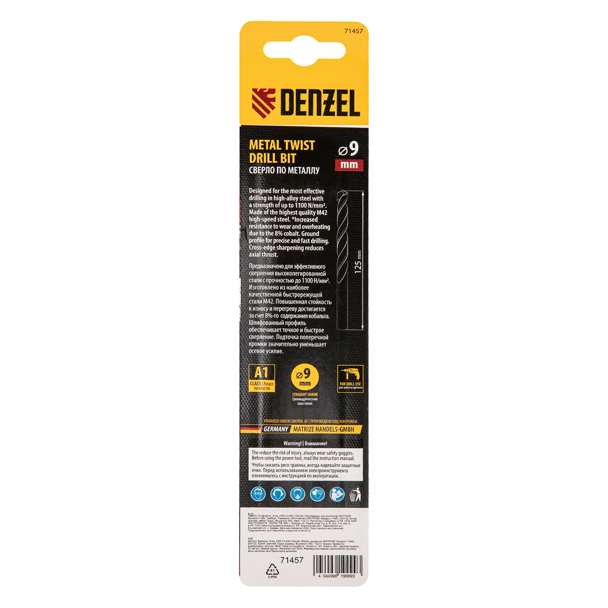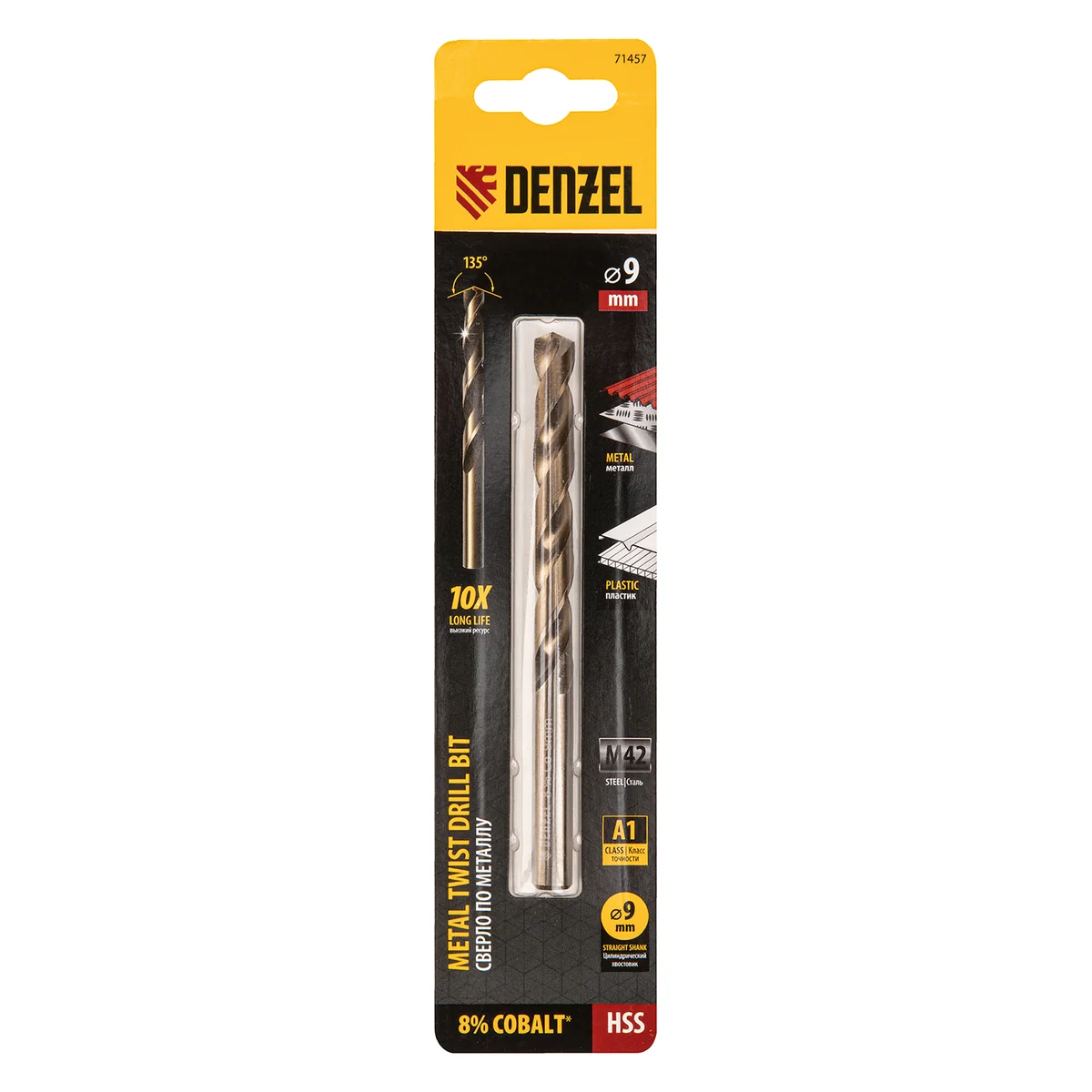 Сверло по металлу, 9 мм, HSS Co-8%// Denzel 71457