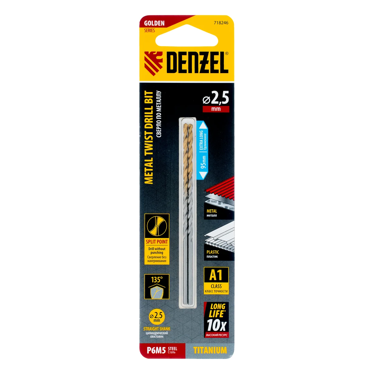 Сверло спиральное по металлу 2,5 х 95 мм Р6М5, Golden Tip, удлиненное, 2шт. Denzel 718246