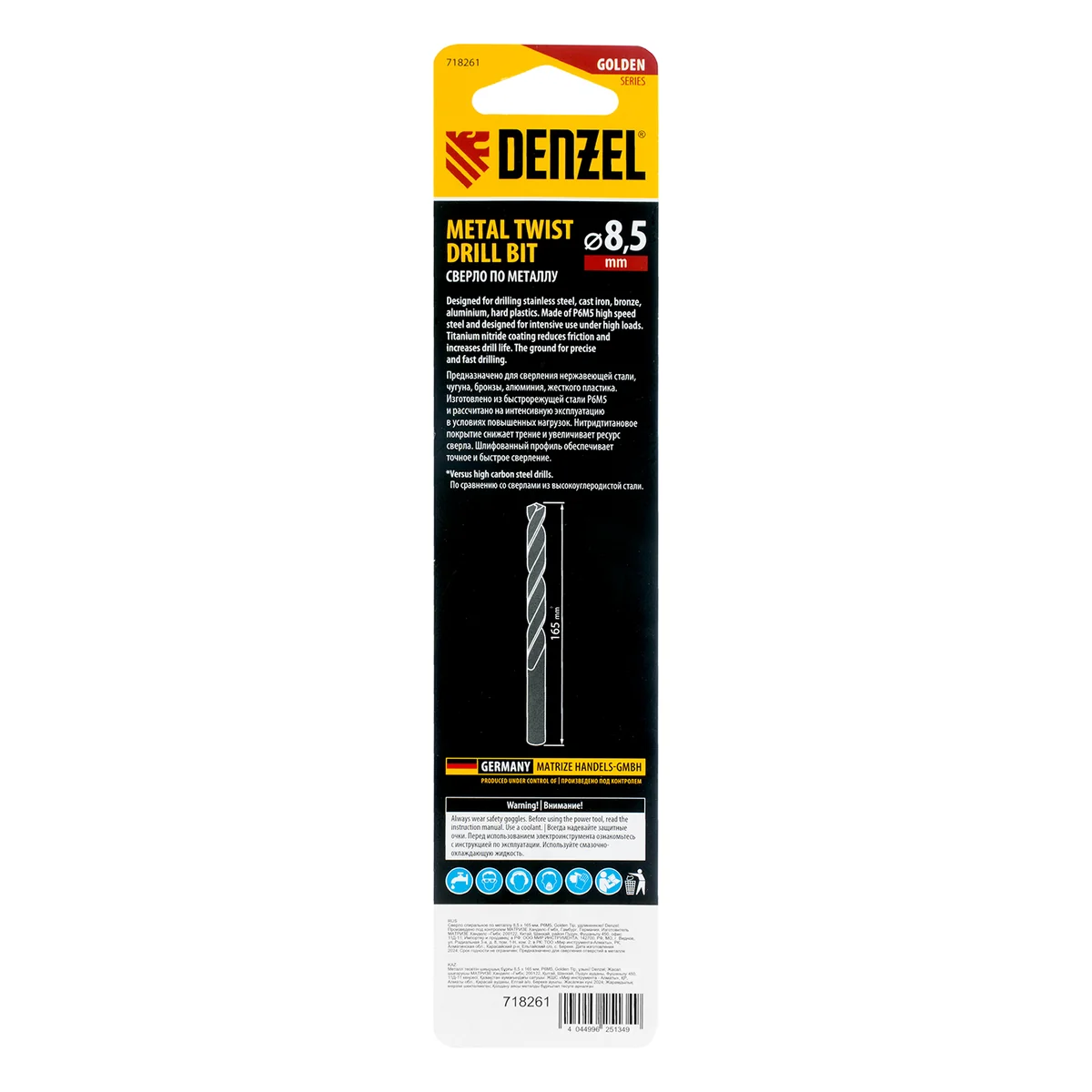 Сверло спиральное по металлу 8,5 х 165 мм, Р6М5, Golden Tip, удлиненное Denzel 718261