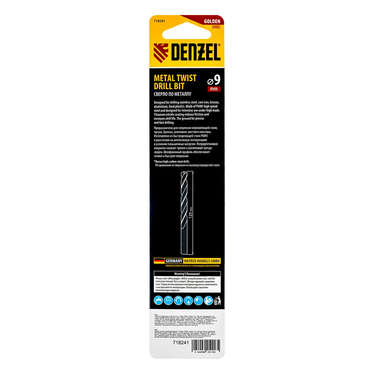 Сверло спиральное по металлу 9 x 125 мм, Р6М5, Golden Tip Denzel 718241