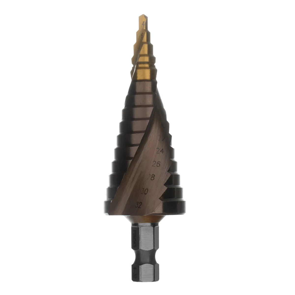 Ступенчатое сверло Denzel 723616 из стали P6M5K5, с 6-гранным хвостовиком, предназначено для сверления отверстий диаметром от 4 до 32 мм в сталях, цветных металлах и пластике. Избавляет от необходимости иметь при себе целый набор традиционных сверл. Позволяет получать отверстия с ровными краями и уже снятой фаской под гайку или болт. Оснастке присвоен класс точности A1. Сверло пригодится дома и в мастерской.