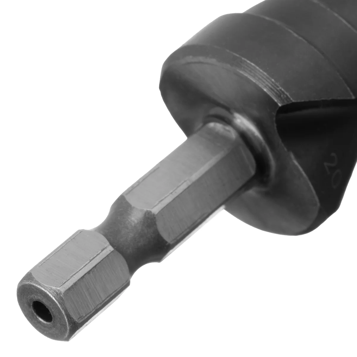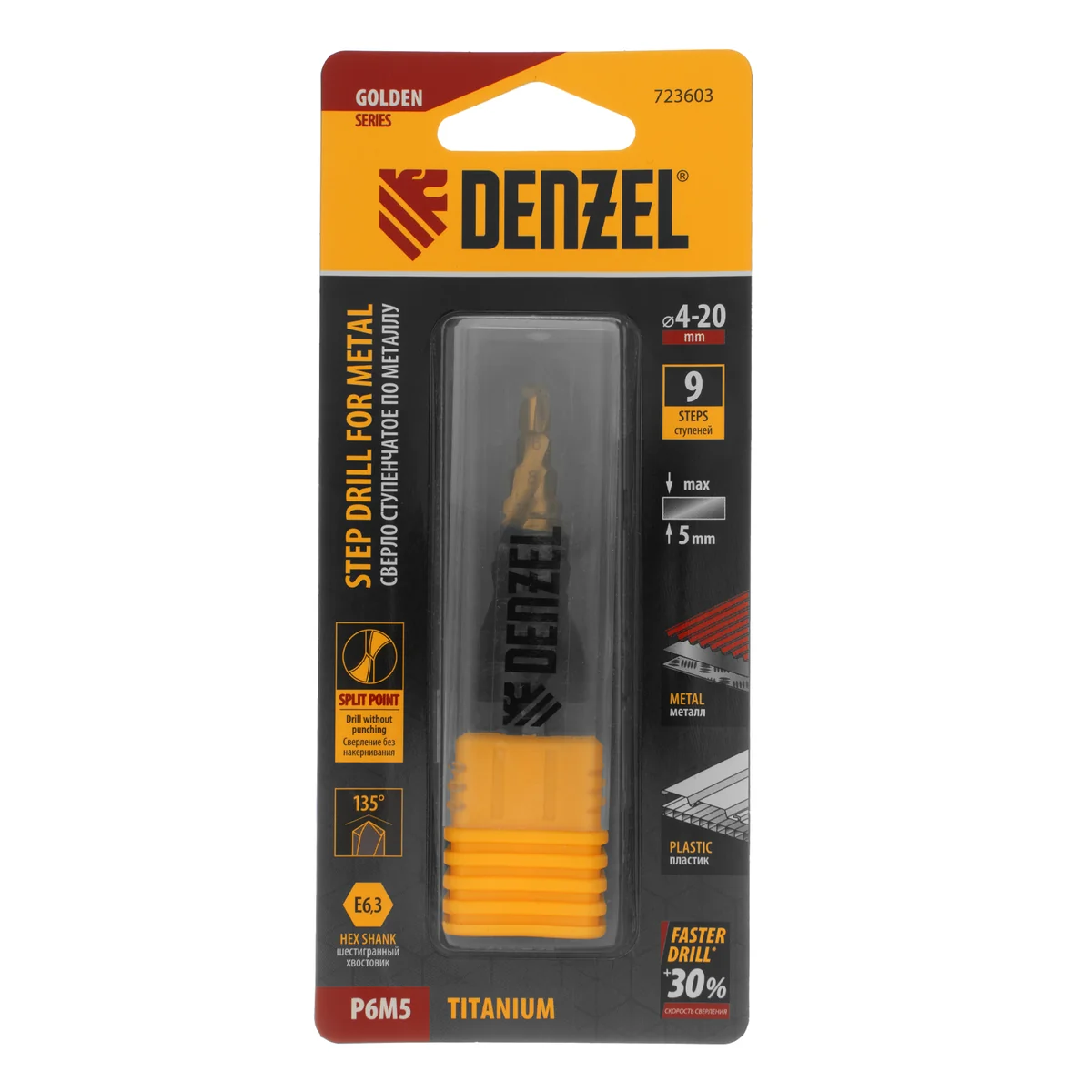 Ступенчатое сверло Denzel 723603 из стали P6M5, с 6-гранным хвостовиком, предназначено для сверления отверстий диаметром от 4 до 20 мм в сталях, цветных металлах и пластике. Избавляет от необходимости иметь при себе целый набор традиционных сверл. Позволяет получать отверстия с ровными краями и уже снятой фаской под гайку или болт. Оснастке присвоен класс точности A1. Сверло пригодится дома и в мастерской.
