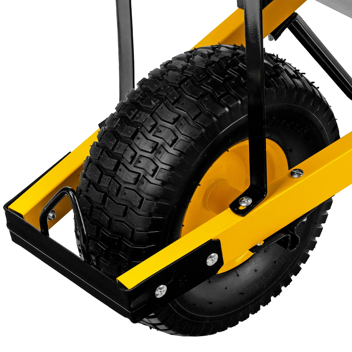 - Устойчивость — тачка не проваливается в грунт благодаря широкому пневмоколесу и подпятникам на ножках.