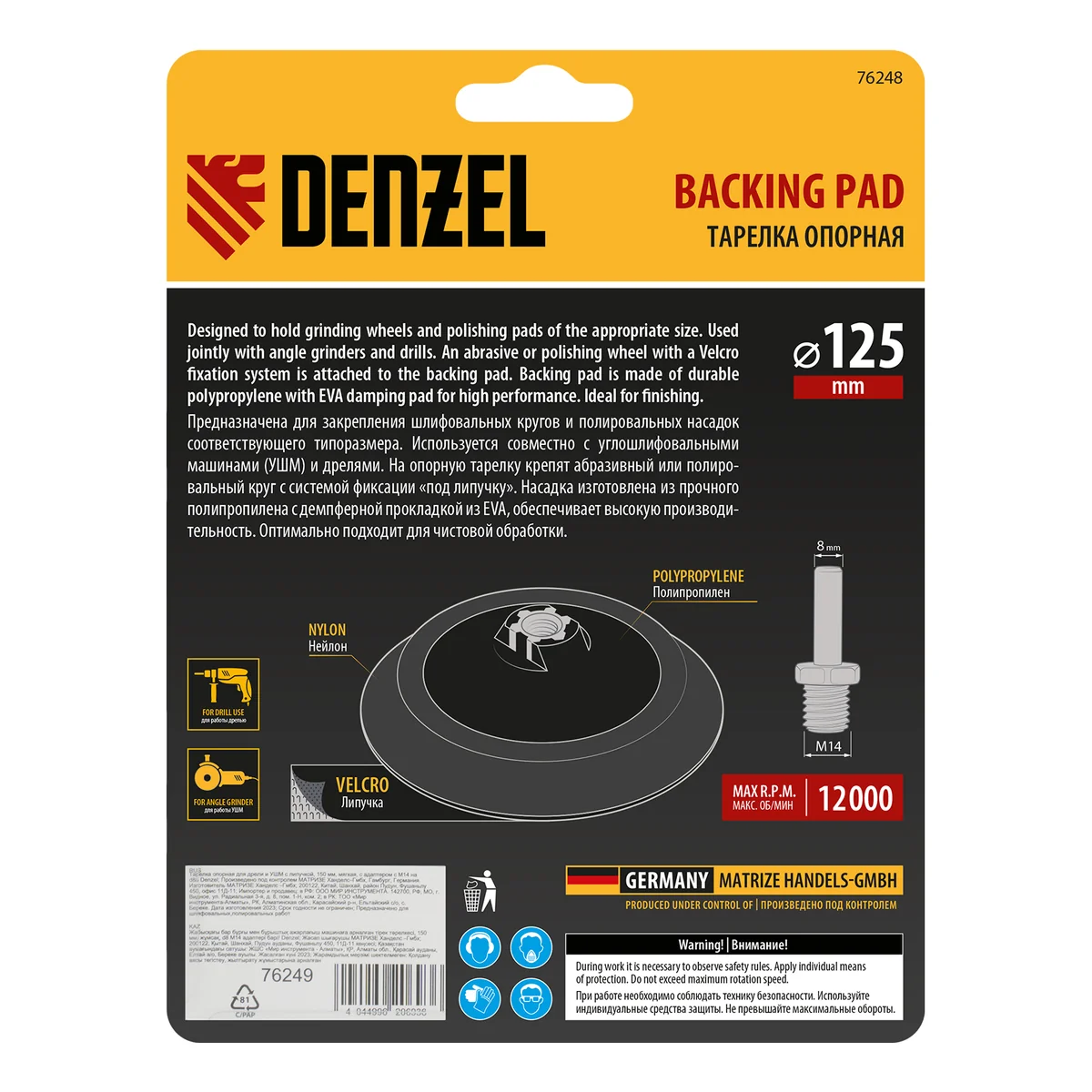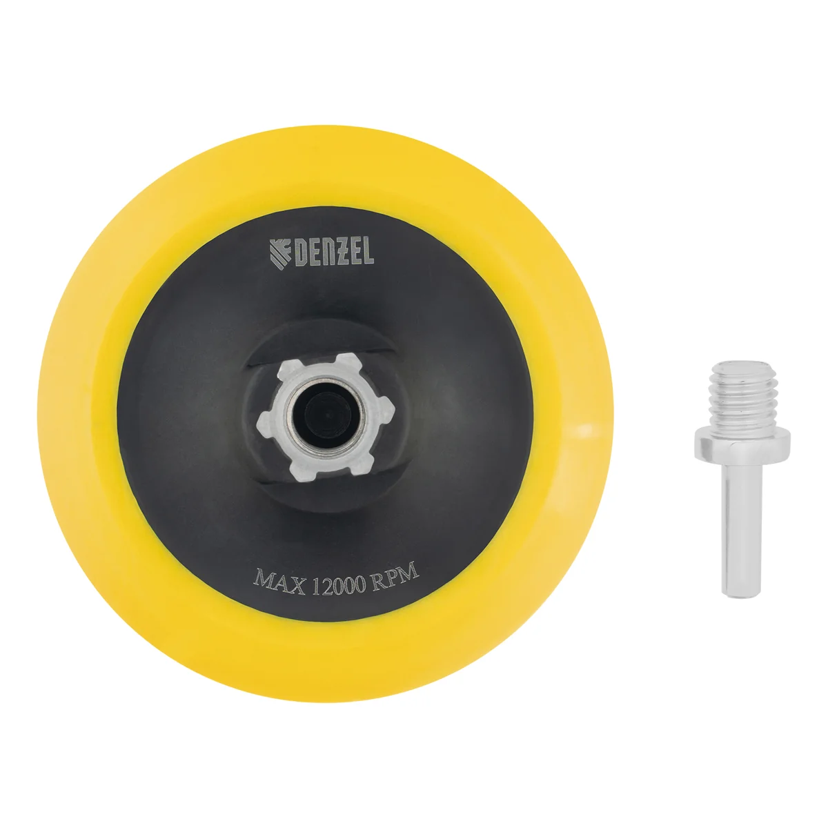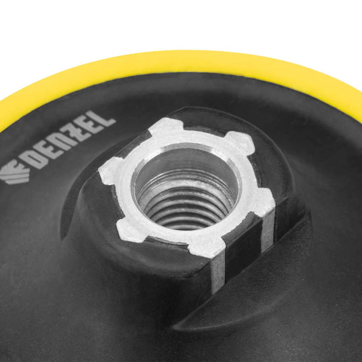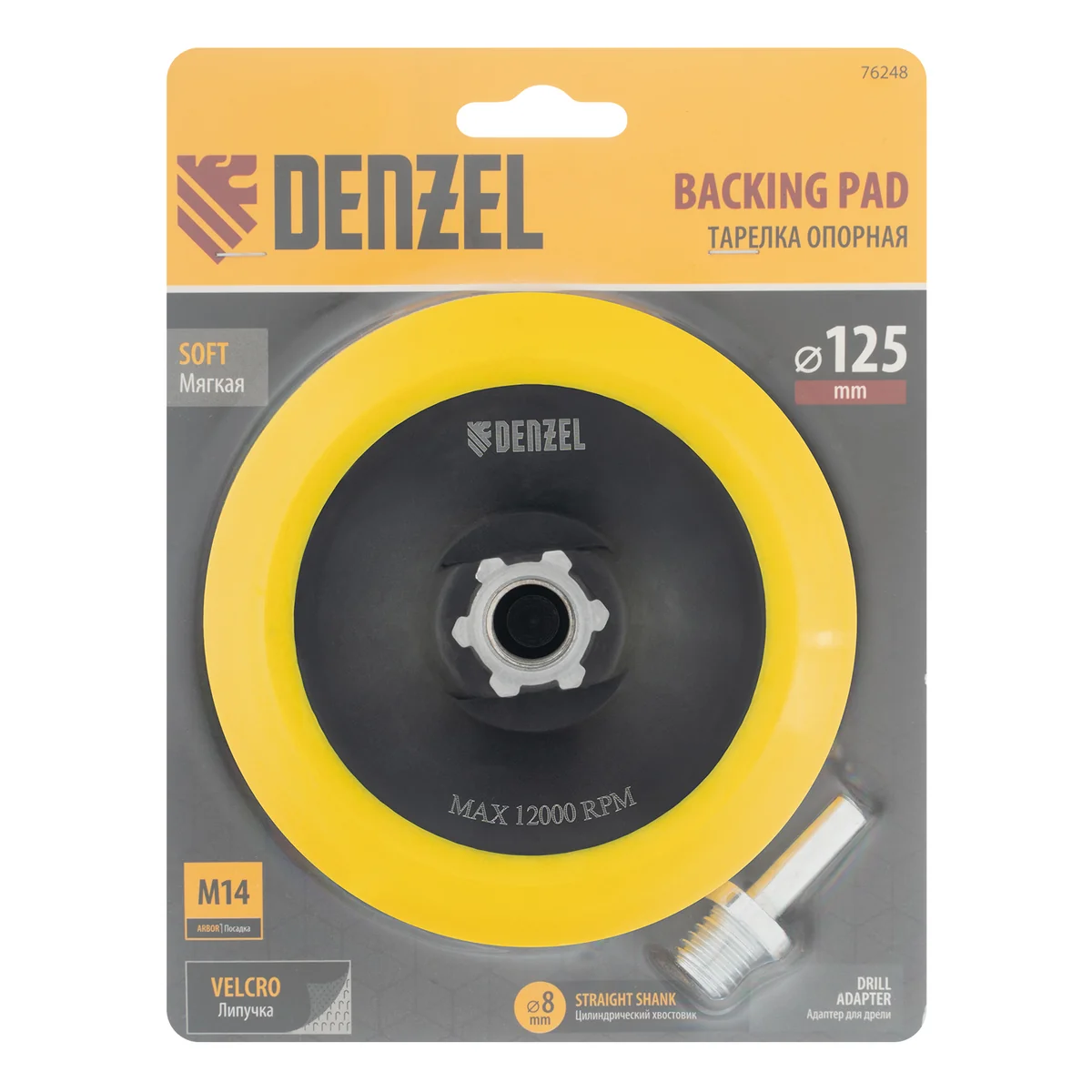 Тарелка опорная для дрели и УШМ с липучкой, 125 мм, мягкая, с адаптером c М14 на d8 Denzel 76248
