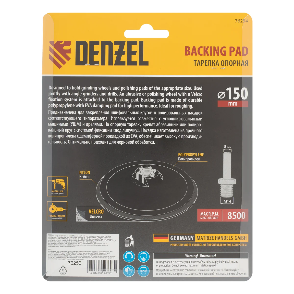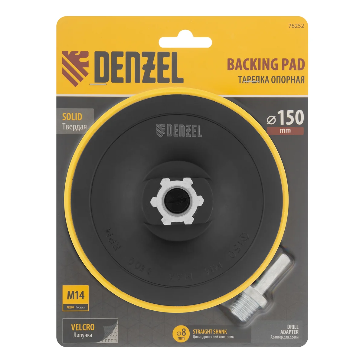 Тарелка опорная для дрели и УШМ с липучкой, 150 мм, стандартная, с адаптером c М14 на d8 Denzel 76252