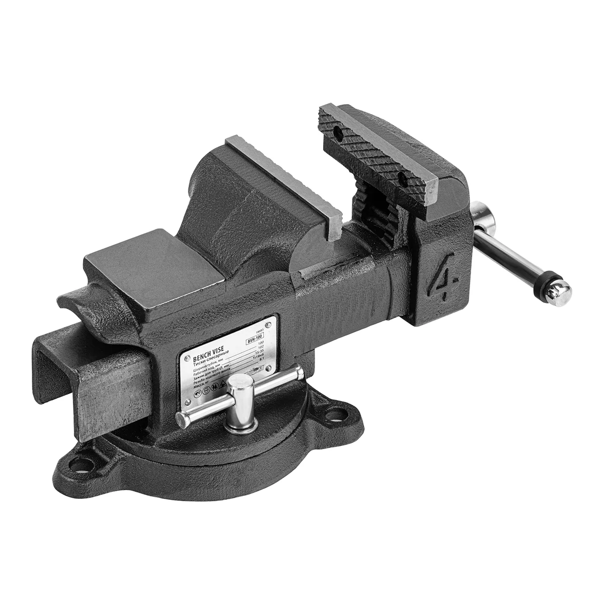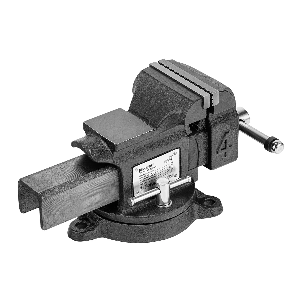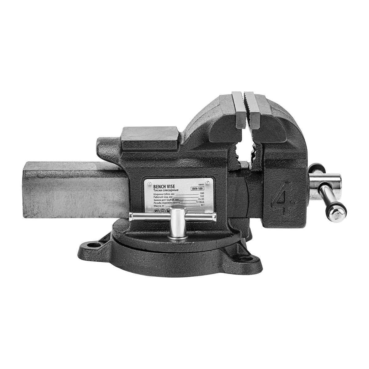 - Функциональность — тиски поворачиваются на 360°, что позволяет менять и выбирать позицию инструмента для удобной работы с заготовкой.