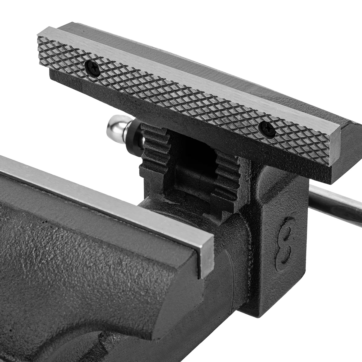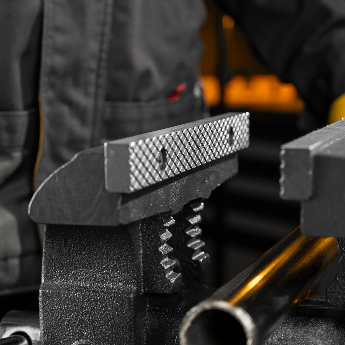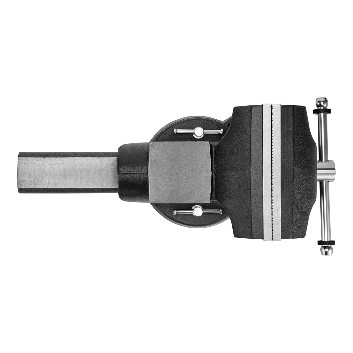 - Функциональность — тиски поворачиваются на 360°, что позволяет менять и выбирать позицию инструмента для удобной работы с заготовкой.