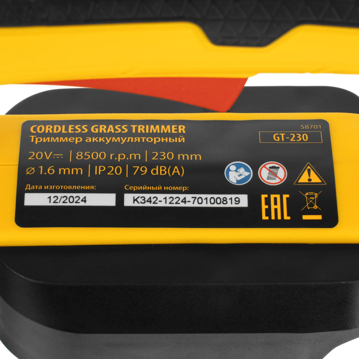 Триммер аккумуляторный GT-230, 230 мм, Li-Ion, 20 В Denzel 58701