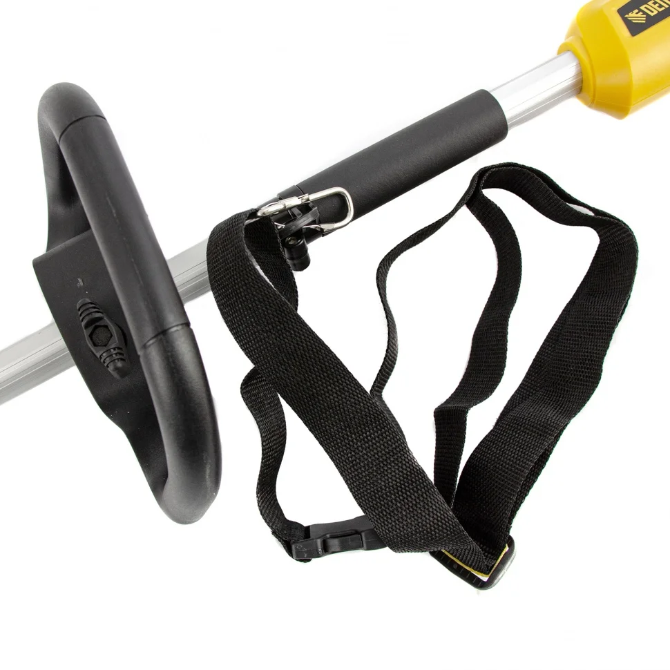 - Плечевой ремень — нагрузка перераспределяется таким образом, чтобы оператор не ощущал усталость даже при длительном скашивании травы.
