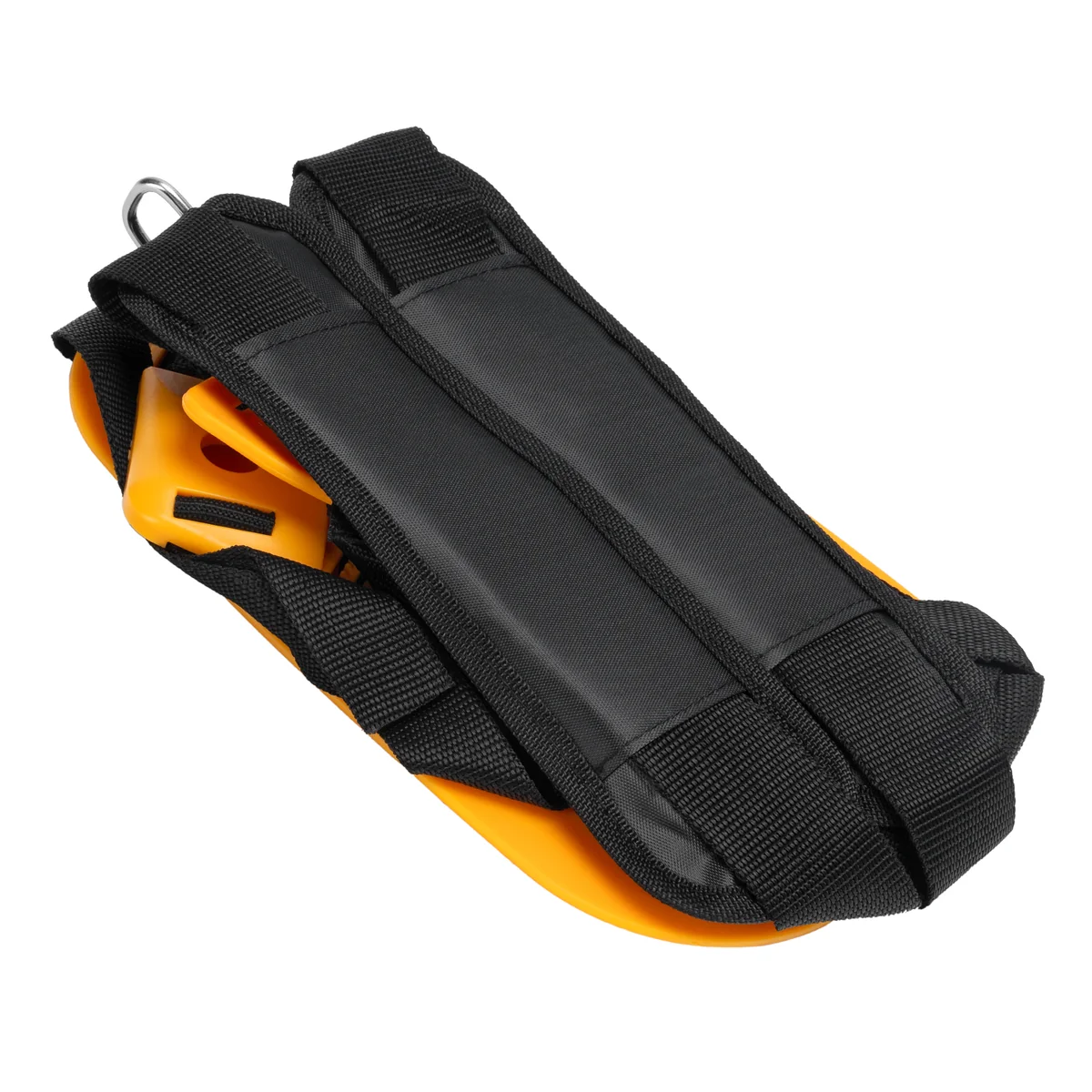 - Комфортная работа — двухплечевой ремень снижает нагрузку на позвоночник и плечи, а специальная пластина защищает бедро от ударов о штангу.