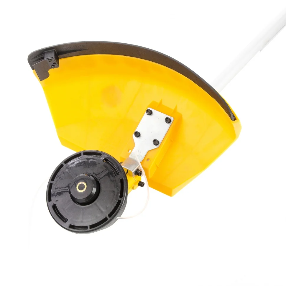 Триммер Denzel DGT-520S 96239 предназначен для подравнивания газонов, борьбы с сорняками, молодым кустарником и побегами деревьев. Бензиновый двигатель последнего поколения объемом 52 см3 обеспечивает уверенную работу в труднодоступных местах. За счет высокой мощности 3 л.с. скорость вращения оснастки составляет 9500 об/мин. Ширина прохода пильным диском — 255 см, а лески — 420 см, поэтому можно обработать большой участок за короткое время.Триммер работает на смеси бензина с маслом, а потому использовать его можно вдали от дома, независимо от источников электроэнергии. В комплект поставки входит удобный дозатор для приготовления топливной смеси.Преимущества:Катушка изготовлена из прочного полиамида, а диск оснащен твердосплавными напайками, поэтому они выдерживают высокие нагрузки и удары о землю, препятствия и т.д.Пусковая система Easy Start делает легким запуск бензинового двигателя, в том числе после долгого перерыва.Защитный кожух не допускает отскакивания камней и веток на оператора.Цилиндро-поршневая группа отличается увеличенным ресурсом, т.к. цилиндр покрыт пористым хромом и хонингован.Прочная алюминиевая штанга сделана разборной для удобства транспортировки и хранения триммера.Ширина стенок штанги 1,5 мм увеличивает ее ударопрочность и устойчивость к высоким нагрузкам.Асимметричная U-образная рукоятка отлично лежит в руках, а прорезиненные наконечники обеспечивают комфортную работу без вибраций.Плечевой ремень с защитой бедра снимает нагрузку с рук оператора.Регулировка плечевого ремня по росту снимает проблему удержания триммера для высоких людей.Гарантия 3 года от производителя подтверждает высокое качество триммера.