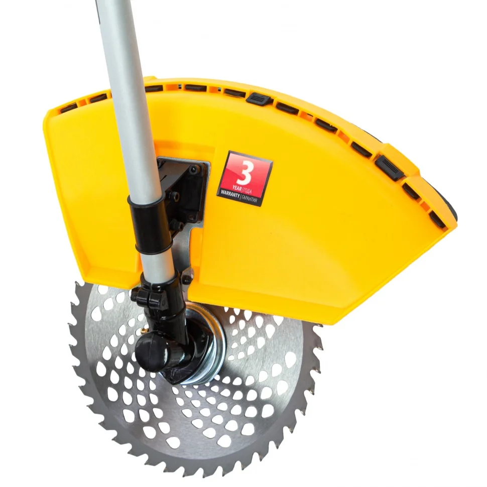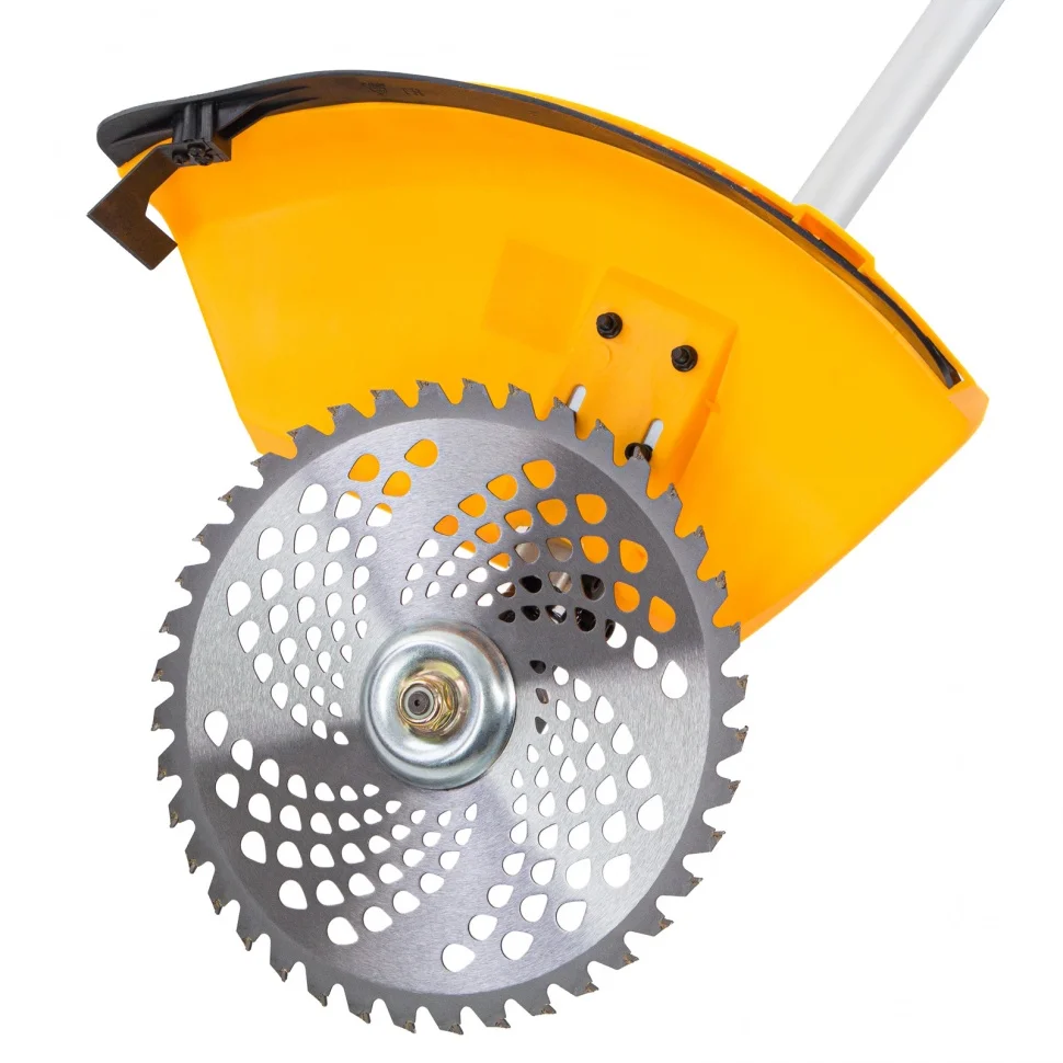 Триммер Denzel DT 43 имеет мощный и экономичный двигатель 2.5 л. с. Детали которого покрыты хромом, что значительно повышает ресурс инструмента. Это отличный инструмент для создания лужаек и борьбы с бурьяном. Легко справится с травой в местах недоступных для колесной косилки. В комплекте 2 режущие насадки: катушка с леской для невысокой травы любой густоты, и трехлопастный нож для бурьяна и жесткой сухой травы. Им комфортно работать даже продолжительное время, т.к. инструмент хорошо сбалансирован, оснащен системой гашения вибраций и имеет в комплекте ремень равномерно распределяющий вес. Работа до отказа, подтвержденная испытаниями - 80 часов. Триммер имеет расширенную гарантию 3 года, что говорит о высоком качестве товара.Преимущества: Работа без остановки - полуавтоматическая катушка поможет легко настроить длину лески, для этого нужно слегка стукнуть шпулей об землю прямо в процессе работы. Легкий старт даже после долгого перерыва - праймер для подкачки топлива облегчает запуск двигателя ручным стартером. Полного бака хватит почти на 45 минут работы. Прозрачный пластик топливного бака позволит легко отследить уровень бензина. Прочная алюминиевая штанга с толщиной стенок 1.5 мм. Закаленный коленчатый вал - увеличивает общий ресурс работы двигателя. Качественный карбюратор - облегчает запуск даже в самых тяжелых условиях. Оптимизированная конструкция поршня - снижает инерционные нагрузки на детали двигателя. Можно работать с мокрой травой. Комфортное и простое управление - все клавиши расположены на правой рукоятке, что позволяет максимально точно управлять инструментом. Безопасность - защитный кожух предохраняет от вылетающих частиц попадающих под нож во время работы. Фильтр не выпадает в процессе работы и его легко заменить без ключа, благодаря винтовому креплению.