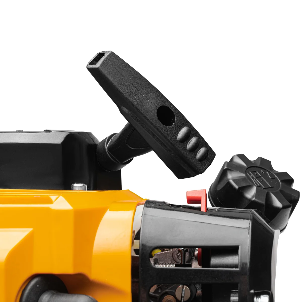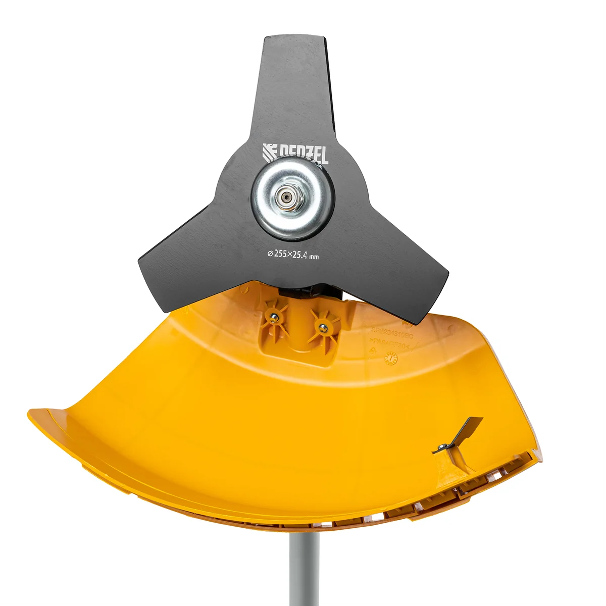 Триммер бензиновый Denzel DTS-43 962135 с двигателем объемом 43 куб. см и неразъемной штангой поставляется комплектом из 2 частей. Усиленная катушка с леской предназначена для скашивания мягкой травы, а трехлопастный нож &mdash, для борьбы с густыми зарослями, многолетними сорняками, молодым кустарником и растительностью с толстыми стеблями. Ширина прохода леской составляет 42 см, ножом &mdash, 25,5 см, что позволяет выполнять большие объемы работ.Двухтактный бензиновый двигатель мощностью 2,5 л. с. обеспечивает эффективное решение поставленных задач и полную автономность. Работать можно даже в самых отдаленных участках сада, не заботясь о наличии сети электропитания.ПреимуществаВысококачественное исполнение &mdash, надежный редуктор, двигатель с хромированным цилиндром и прочное сцепление обеспечивают стабильную работу триммера.Система легкого запуска Easy Start &mdash, трос стартера вытягивается легко и без рывков, что упрощает начало работы.Легкое включение &mdash, праймер для подкачки топлива упрощает запуск двигателя, поэтому включить триммер даже после долгого простоя будет несложно.Защита от случайного пуска &mdash, блокиратор курка газа предотвращает включение триммера по неосторожности, обеспечивая безопасность пользователя.Удобная работа без усталости &mdash, одноплечевая подвесная система перераспределяет вес бензотриммера, а мягкая защита бедра позволяет снизить уровень вибраций и избежать ударов.Безопасная эксплуатация &mdash, прочный кожух, закрывающий оснастку, защищает пользователя от летящей травы, грязи и мелких камней.Легкое обновление лески &mdash, достаточно слегка ударить полуавтоматической катушкой по земле, не снижая оборотов двигателя, что позволяет быстрее справиться с работой.Специальный нож на фартуке кожуха &mdash, концы лески подрезаются до нужной длины, это позволяет предотвратить перегрузку двигателя.Эргономичность &mdash, рукоятки велосипедного типа обеспечивают правильное положение рук, что делает работу с триммером комфортной.Быстрая подготовка к работе &mdash, бензотриммер поставляется с уже установленным на штангу редуктором и корпусом сцепления.Удобный дозатор в комплекте &mdash, емкость для приготовления топливной смеси не придется приобретать отдельно.Гарантия на заводской брак 3 года &mdash, качество и надежность инструмента подтверждены производителем.