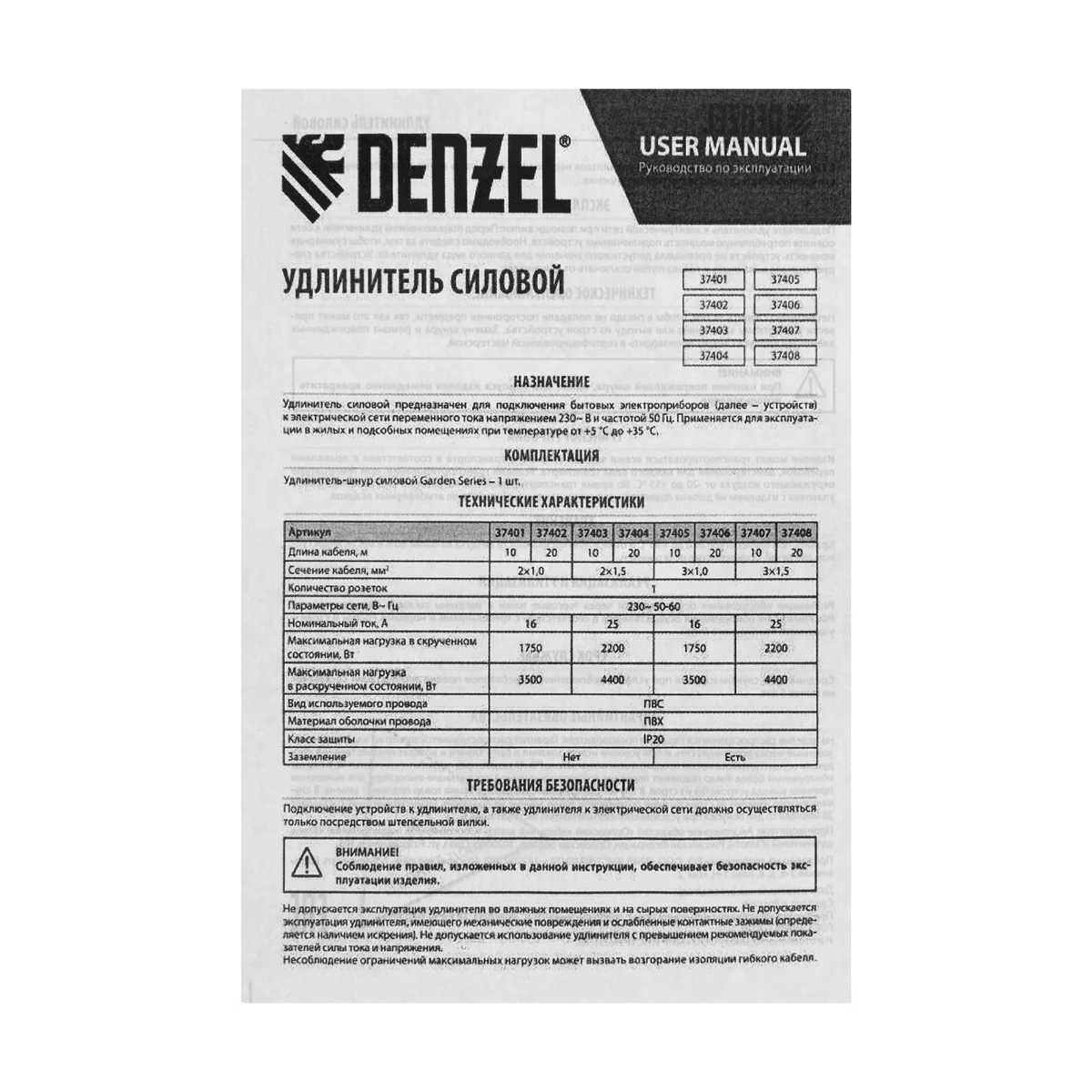 Силовой удлинитель-шнур Denzel Top Series 37419 с 1 розеткой, с кабелем КГТТ сечением 3 x 1,5 мм и длиной 10 м, предназначен для подключения электроприборов на удалении от розетки. Максимальная мощность потребителя составляет 3680 Вт для полностью размотанного кабеля и 1840 Вт — для смотанного. Удлинитель подходит для подключения электроинструмента, будет полезен на строительной площадке и в быту.