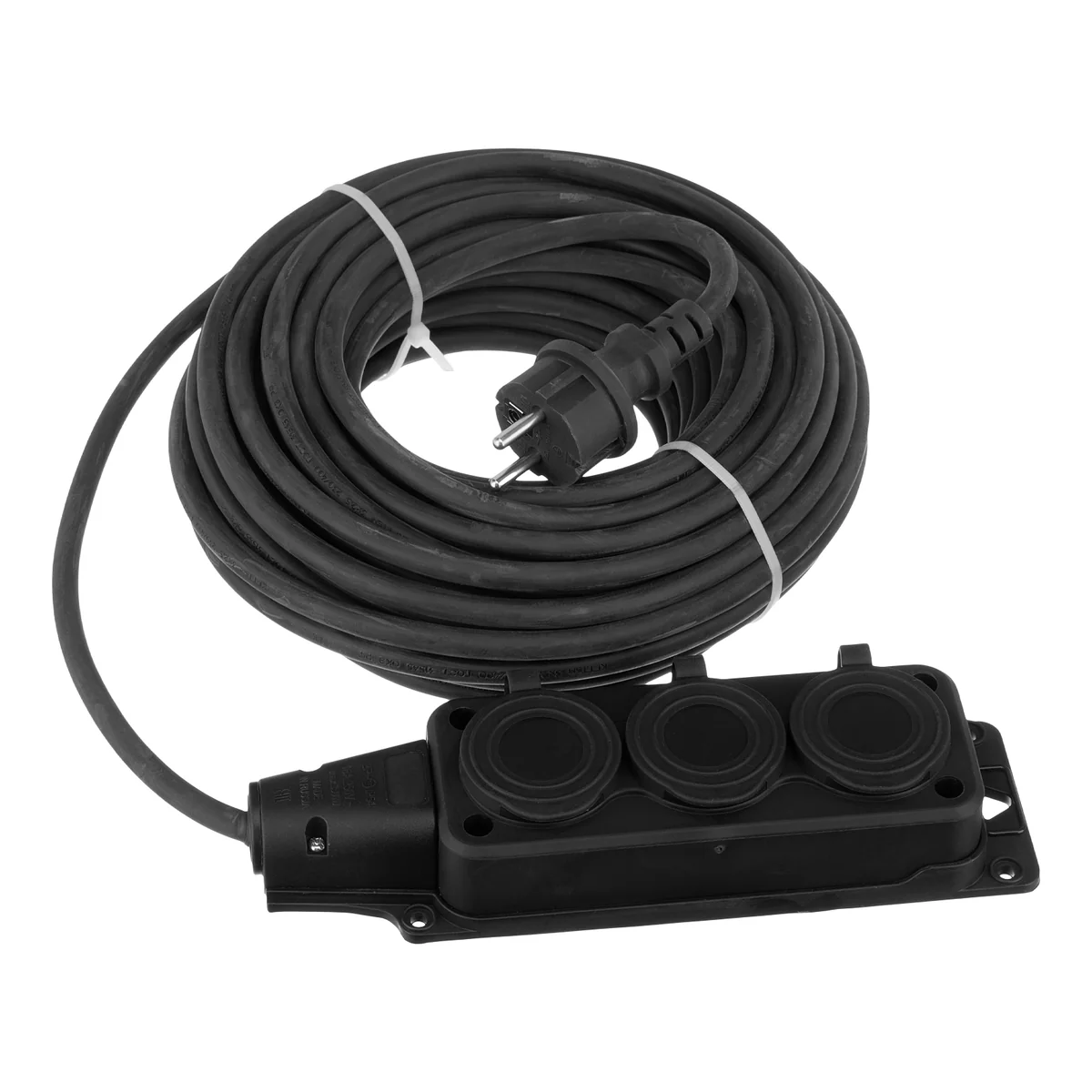 Силовой удлинитель-шнур Denzel Top Series 37423 с 3 розетками, с кабелем КГТТ сечением 3 x 2,5 мм и длиной 20 м, предназначен для подключения электроприборов на удалении от розетки. Суммарная мощность потребителей составляет 5500 Вт для полностью размотанного кабеля и 2750 Вт — для смотанного. Удлинитель подходит для подключения электроинструмента, будет полезен на строительной площадке и в быту.