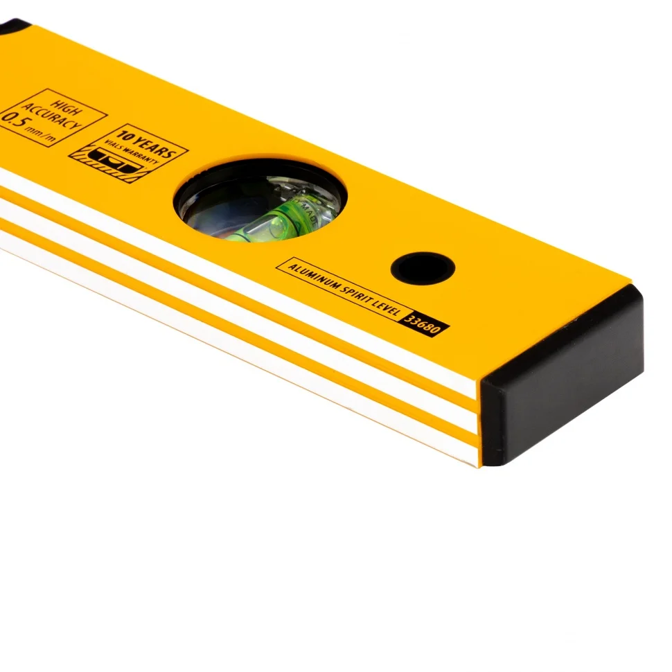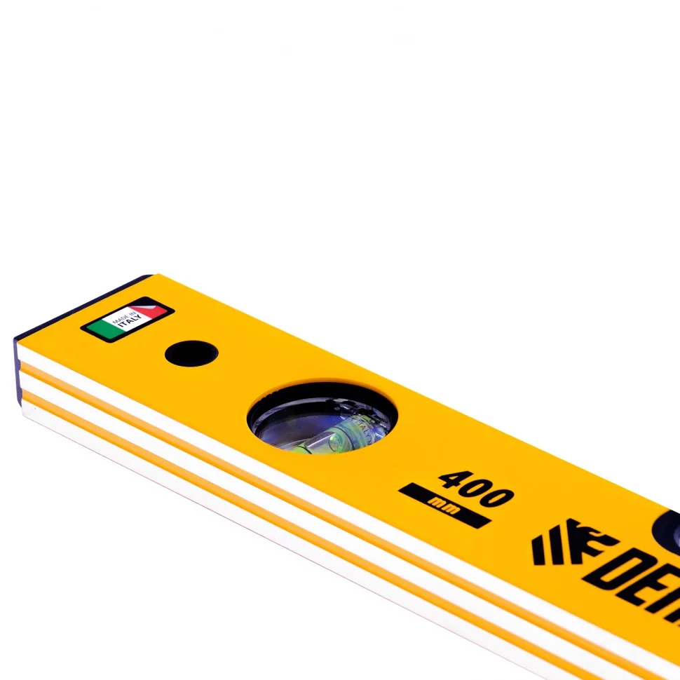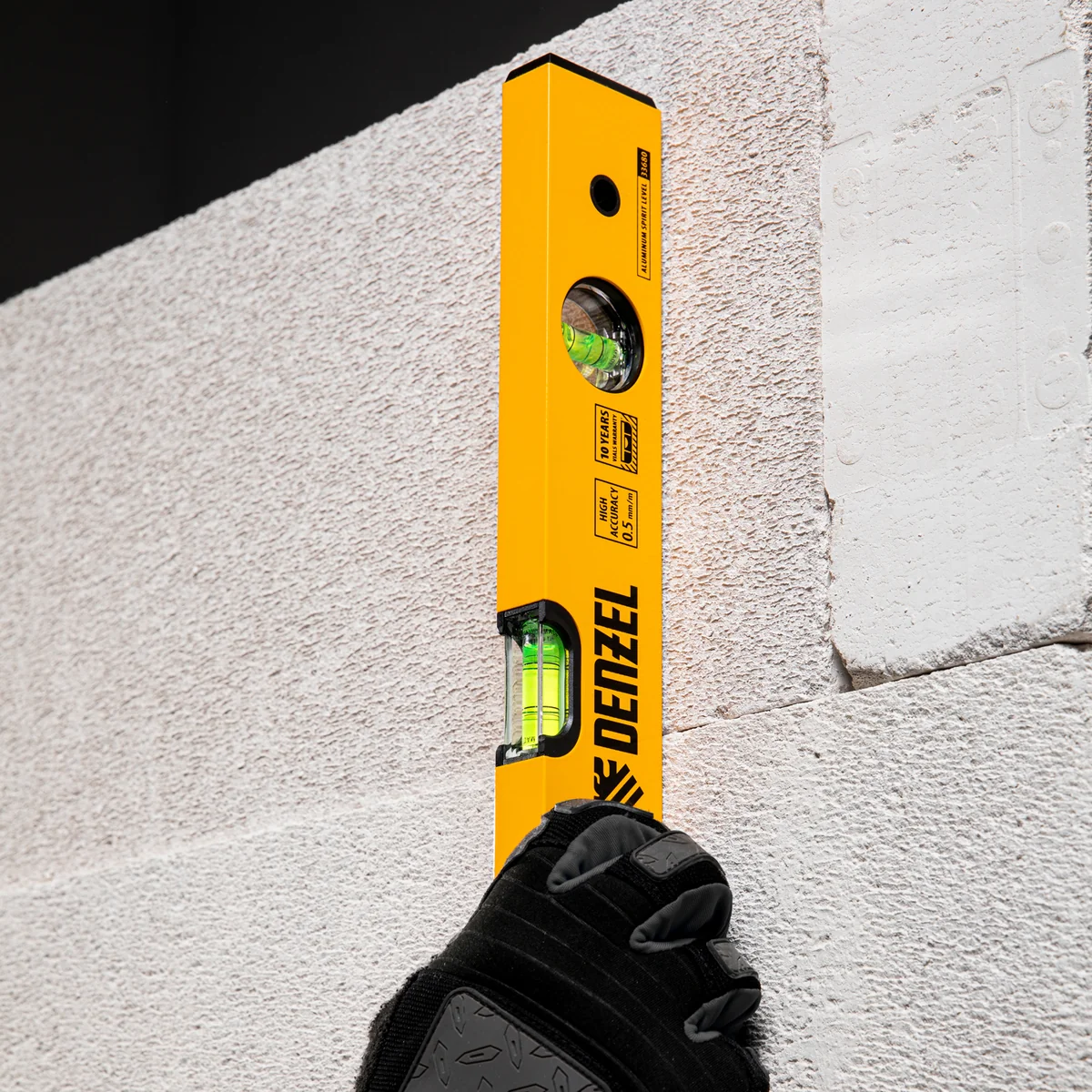 Алюминиевый фрезерованный уровень Denzel 33680 длиной 400 мм, с 3 глазками, используется для контроля расположения вертикальных и горизонтальных плоскостей. Благодаря инструменту риск погрешности да снижается, что позволяет получить качественный результат.Для определения отклонения вертикали 90 градусов необходимо использовать пузырьковую ампулу только в верхнем положении уровня. Только базовая поверхность является рабочей (противоположная ампуле 180 градусов).ПреимуществаАмпулы уровня закрыты стенками из поликарбоната для защиты от ударов.Погрешность измерений сведена к минимуму (0,5 мм/м), т.к. базовая поверхность фрезерована.Алюминиевый профиль выступает залогом конструкционной прочности инструмента.Электронный контроль при монтаже пузырьковых ампул гарантирует высокую точность замеров.