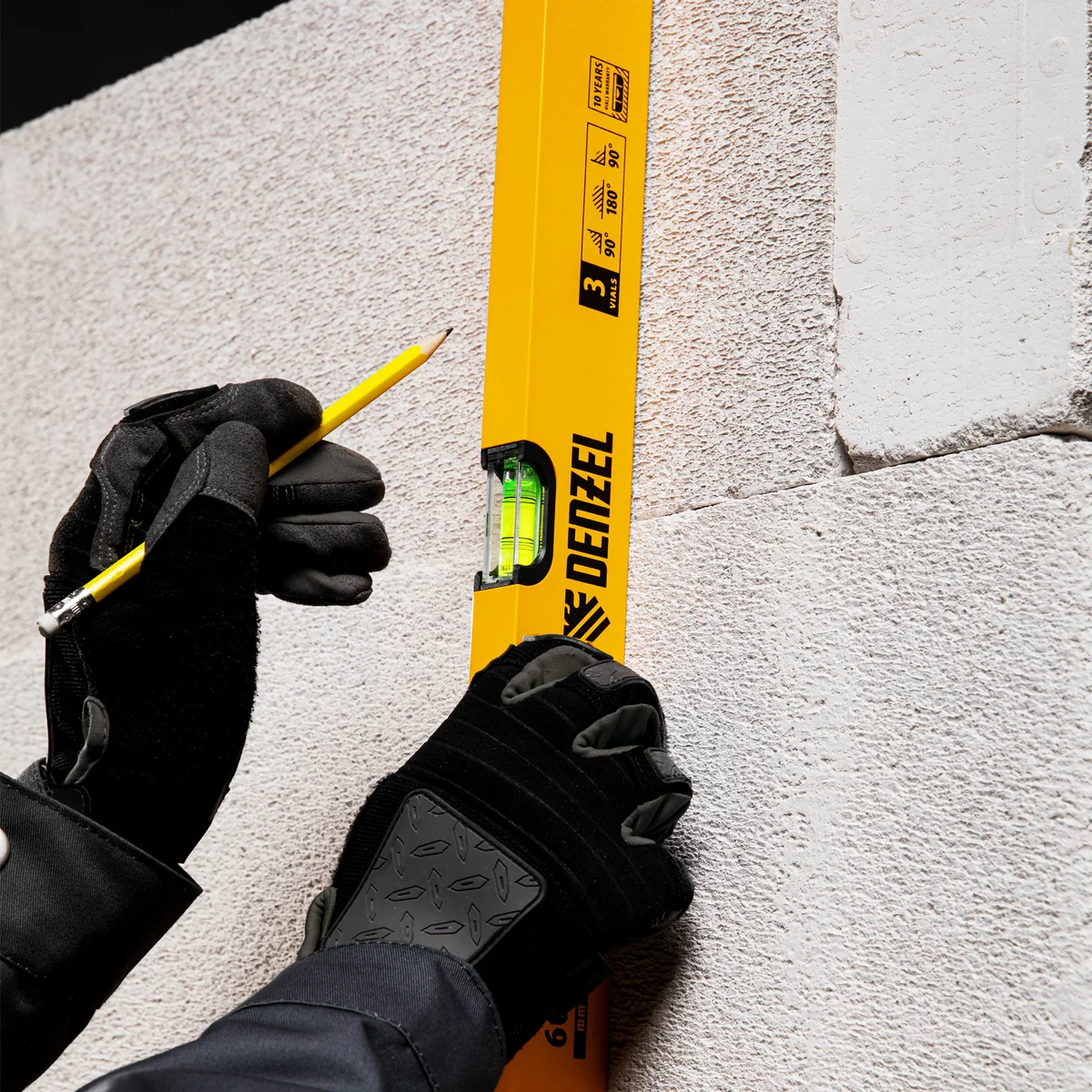 Алюминиевый фрезерованный уровень Denzel 33681 длиной 600 мм, с 3 глазками, используется для контроля расположения вертикальных и горизонтальных плоскостей. Благодаря инструменту риск погрешности да снижается, что позволяет получить качественный результат.Для определения отклонения вертикали 90 градусов необходимо использовать пузырьковую ампулу только в верхнем положении уровня. Только базовая поверхность является рабочей (противоположная ампуле 180 градусов).ПреимуществаАмпулы уровня закрыты стенками из поликарбоната для защиты от ударов.Погрешность измерений сведена к минимуму (0,5 мм/м), т.к. базовая поверхность фрезерована.Алюминиевый профиль выступает залогом конструкционной прочности инструмента.Электронный контроль при монтаже пузырьковых ампул гарантирует высокую точность замеров.