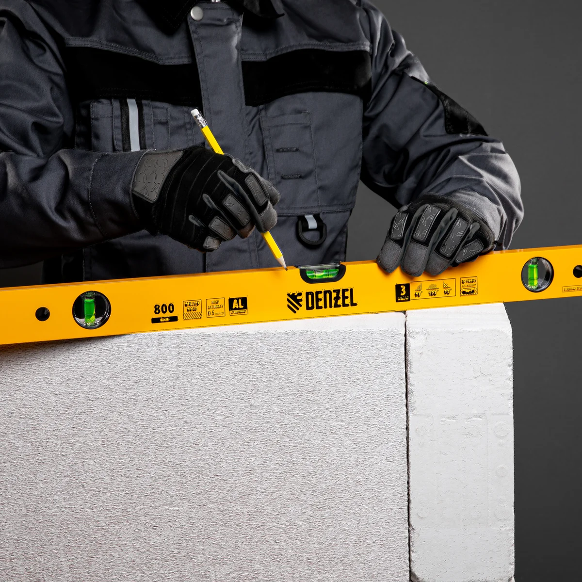 Алюминиевый фрезерованный уровень Denzel 33682 длиной 800 мм, с 3 глазками, используется для контроля расположения вертикальных и горизонтальных плоскостей. Благодаря инструменту риск погрешности да снижается, что позволяет получить качественный результат.Для определения отклонения вертикали 90 градусов необходимо использовать пузырьковую ампулу только в верхнем положении уровня. Только базовая поверхность является рабочей (противоположная ампуле 180 градусов).ПреимуществаАмпулы уровня закрыты стенками из поликарбоната для защиты от ударов.Погрешность измерений сведена к минимуму (0,5 мм/м), т.к. базовая поверхность фрезерована.Алюминиевый профиль выступает залогом конструкционной прочности инструмента.Электронный контроль при монтаже пузырьковых ампул гарантирует высокую точность замеров.