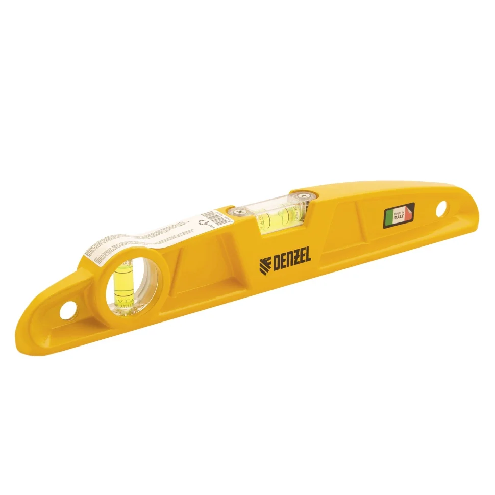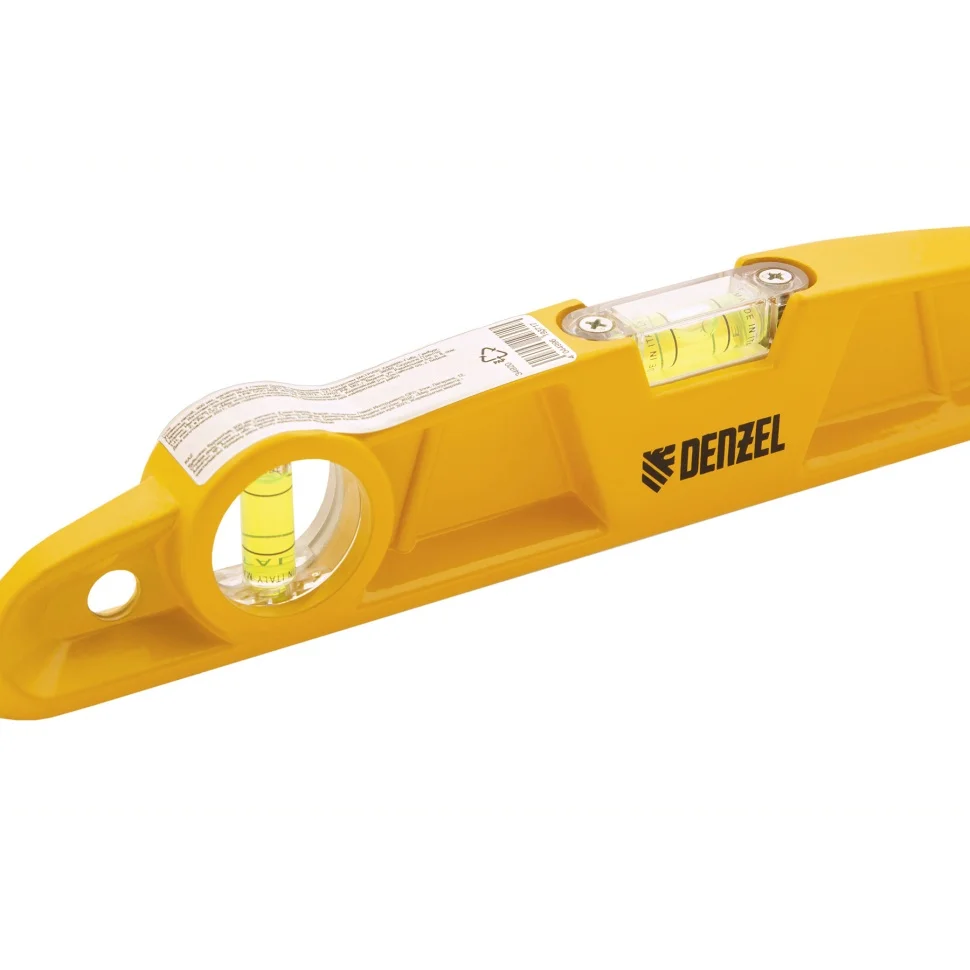Литой магнитный уровень Denzel 34920 длиной 300 мм, с 2 глазками, поможет создать ровные линии в горизонтальной и вертикальной плоскостях. Строительный уровень обеспечивает высокоточную работу и используется при укладке напольной и настенной плитки, выравнивании кирпичной кладки, брусчатки и т.д.Для определения отклонения вертикали 90 градусов необходимо использовать пузырьковую ампулу только в верхнем положении уровня. Только базовая поверхность является рабочей (противоположная ампуле 180 градусов).ПреимуществаЗалог высокого качества уровня — литой алюминиевый профиль, устойчивый к скручиванию и образованию коррозии.Встроенные магниты обеспечивают надежную фиксацию инструмента на металлических поверхностях, что повышает удобство работы.На пузырьковые ампулы распространяется 10-летняя гарантия, что подтверждает их высокое качество.В корпусе предусмотрены отверстия для подвесного хранения инструмента.