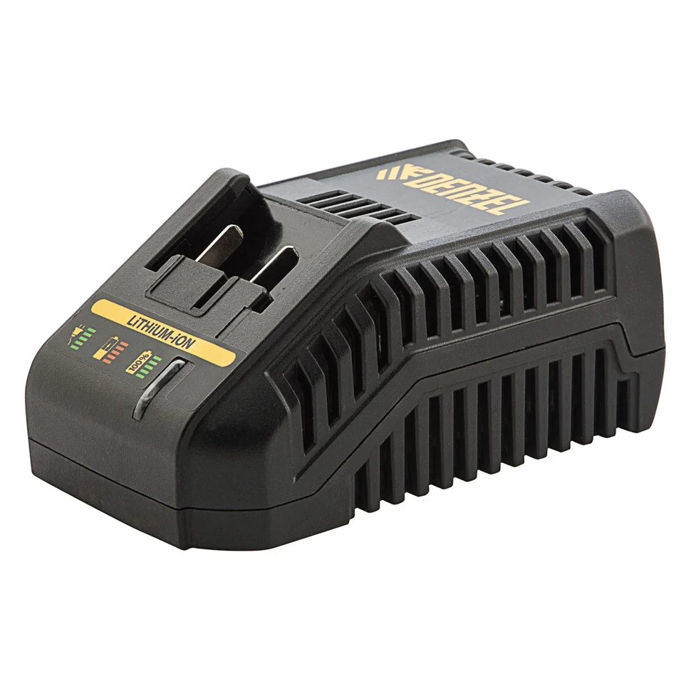 Зарядное устройство нового поколения с высоким качеством заряда для батарей напряжением 14 В. Интеллектуальное устройство для бережной и максимальной зарядки батареи вашего инструмента Denzel.