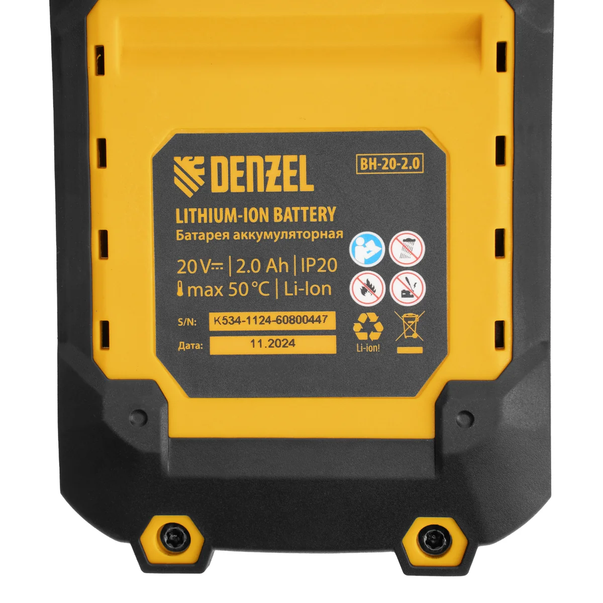 - Универсальность — аккумулятор совместим со всеми инструментами единой платформы Denzel Power System 20V.