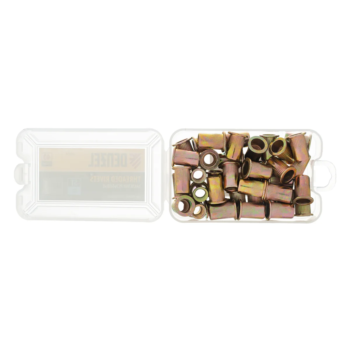 - Удобное хранение и транспортировка — заклепки поставляются в прочном пластиковом кейсе с защелкой.